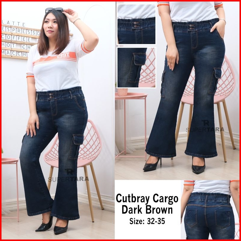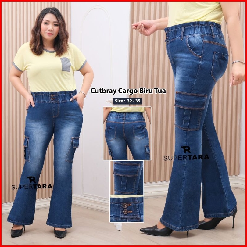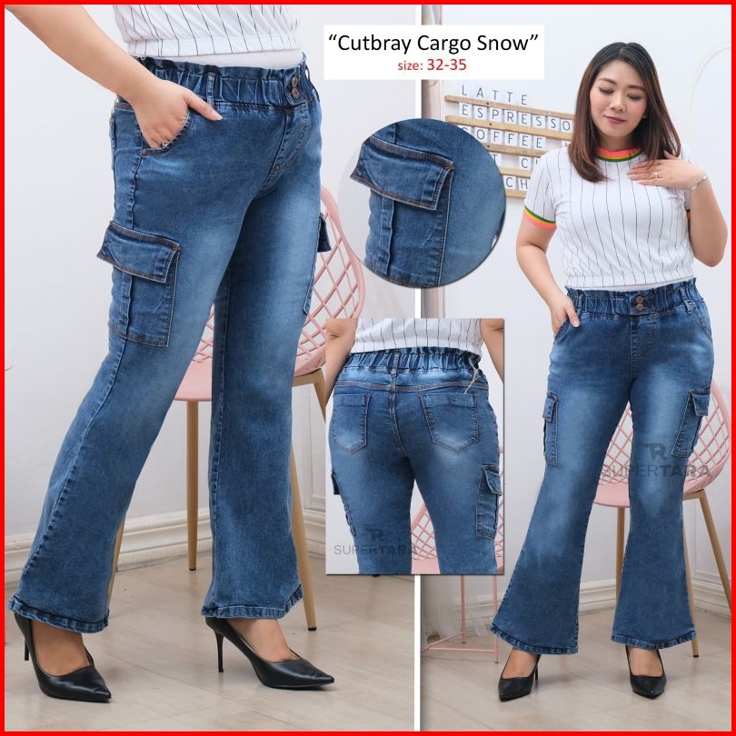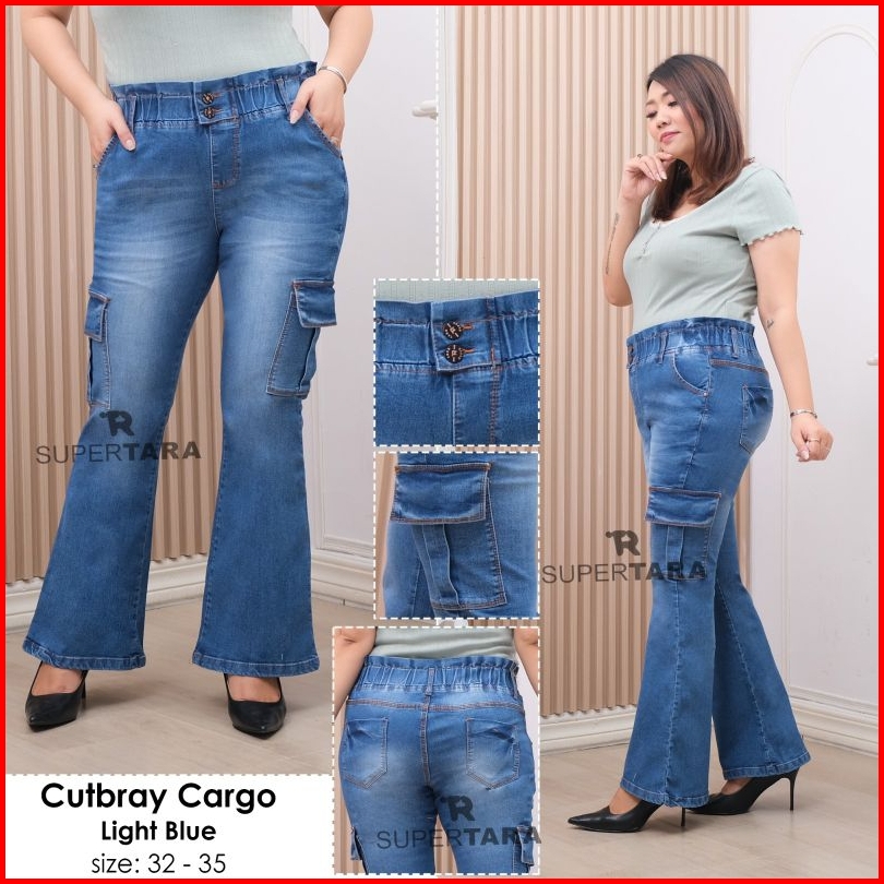 Tr16 - Terbaru Cutbray Cargo Wanita Jumbo Supertara Size 32-35 Jeans Street Pinggang Karet