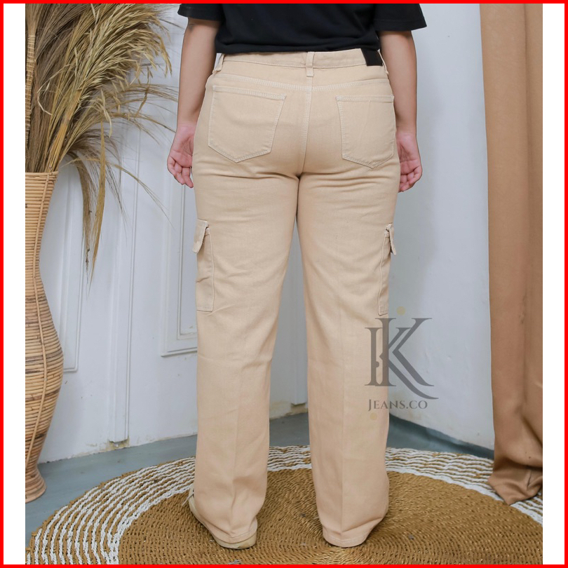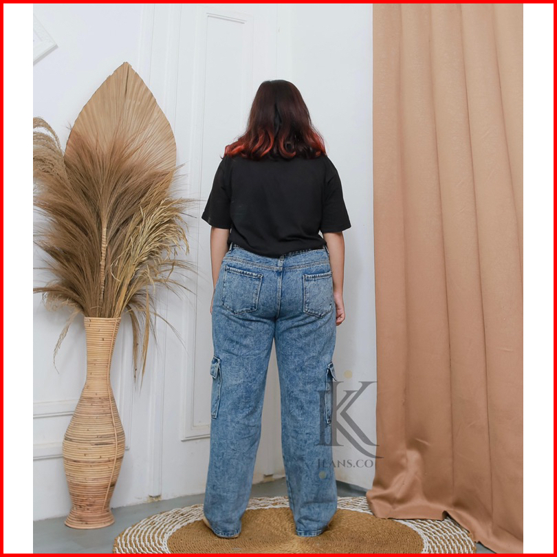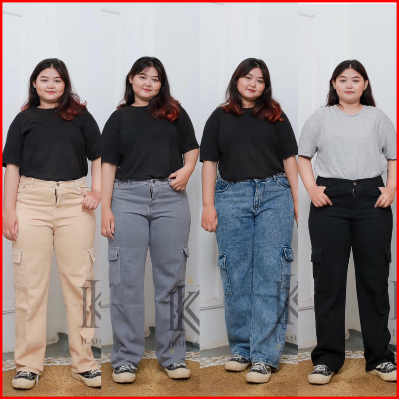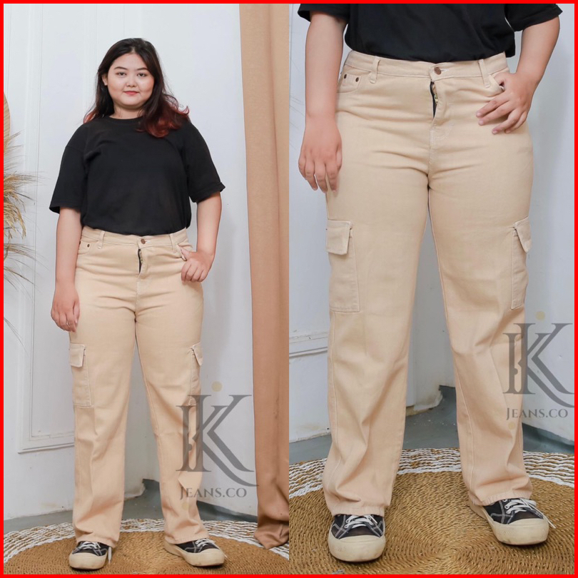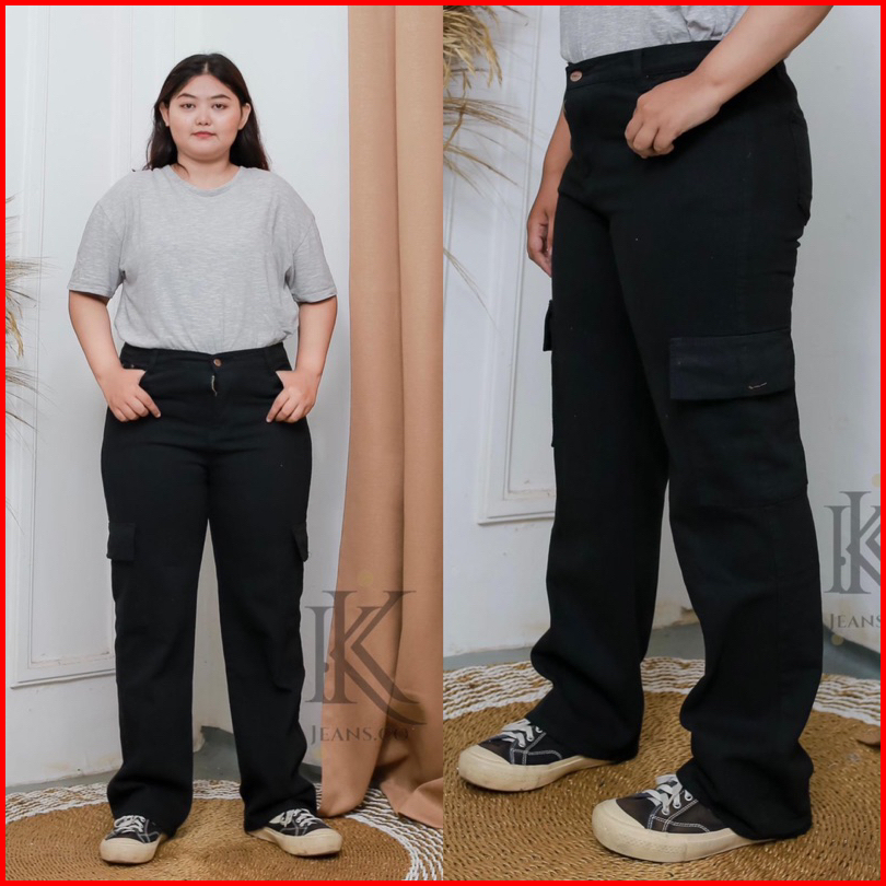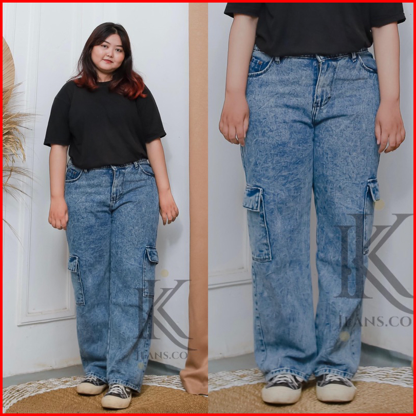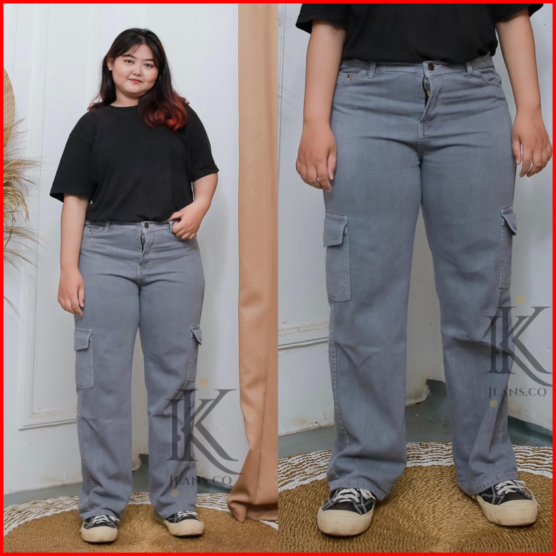 Cargo Jeans Jumbo Tebal 13os Highwaist Wanita Korean Style Big Size 27-42
