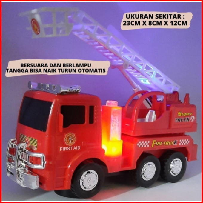 Wtbs Mainan Anak Mobil Pemadam Kebakaran Tangga Auto Dan Bersuara Sirine Dan Lampu