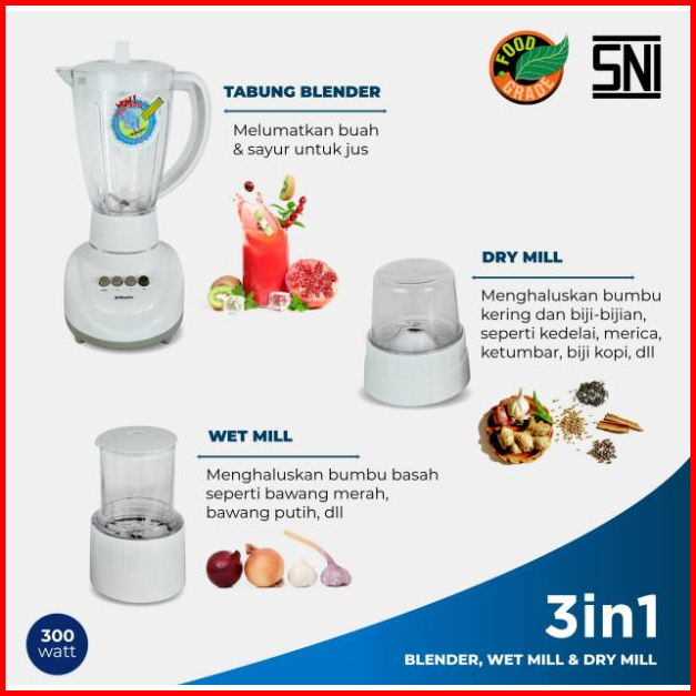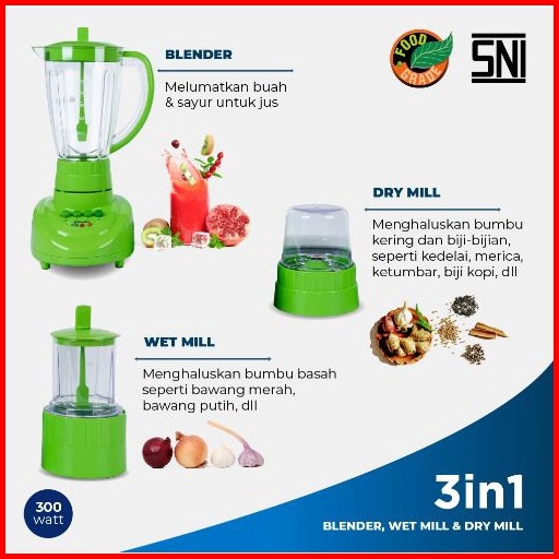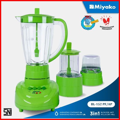 Blender Miyako Bl-152 Pf-ap 3 In 1 Dengan Wadah Plastik 1.5 Liter Garansi 1 Tahun