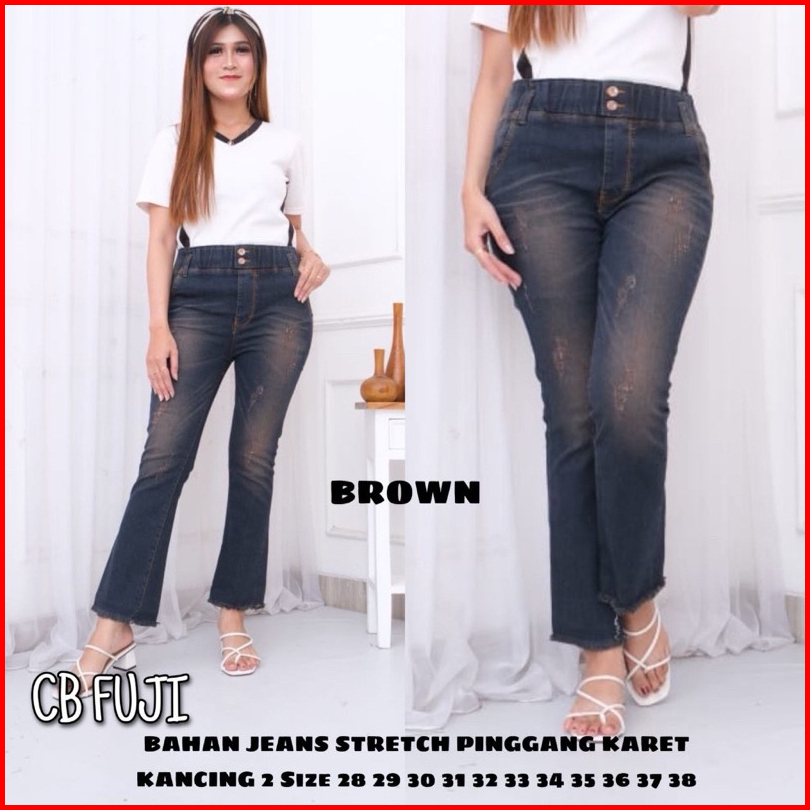 Hikaru Jeans Cutbray Pinggang Karet Bawah Rawis Sobek Cakar Fuji Jeans Cutbray Pinggang Karet
