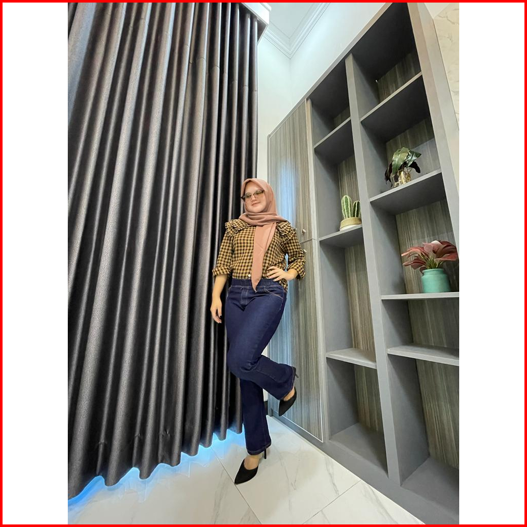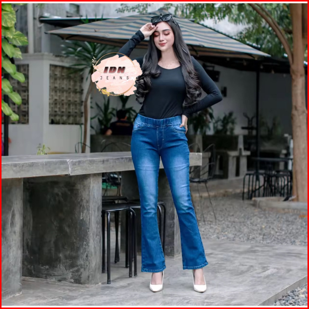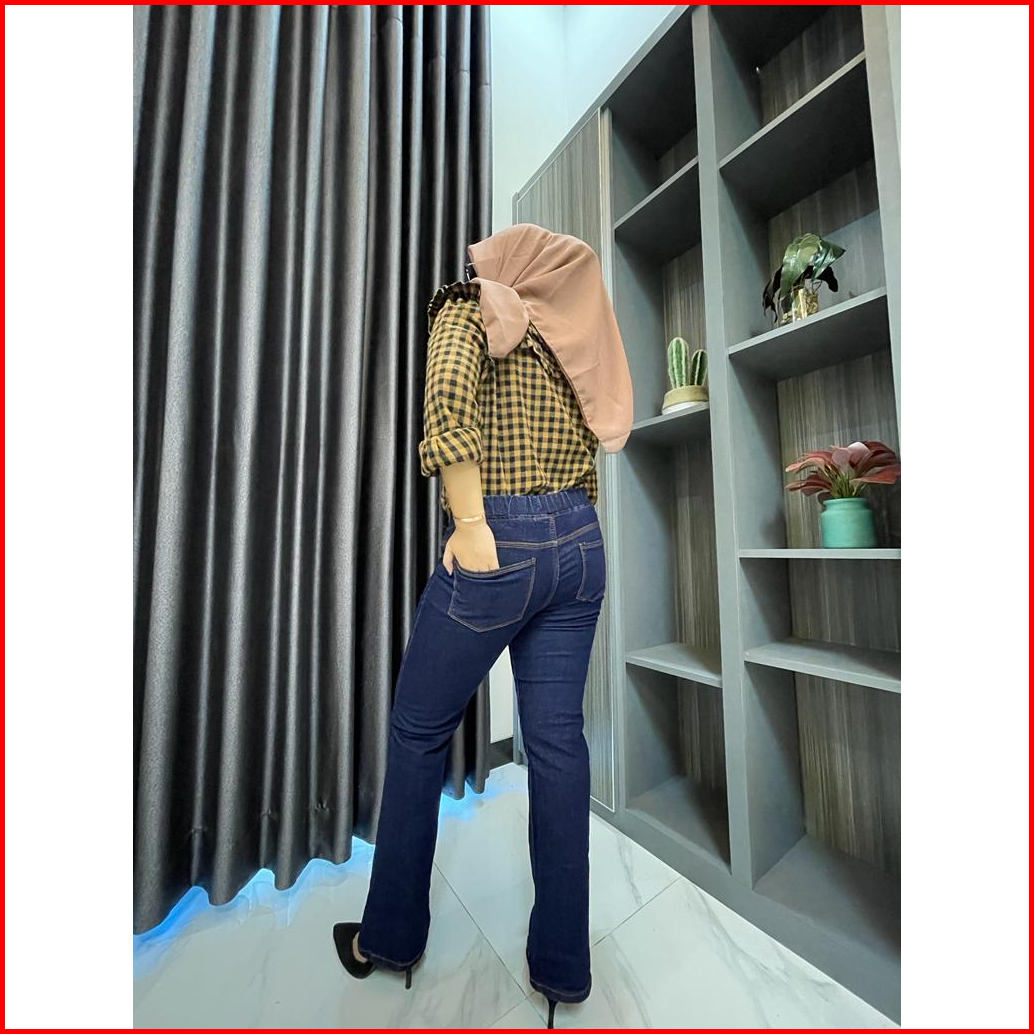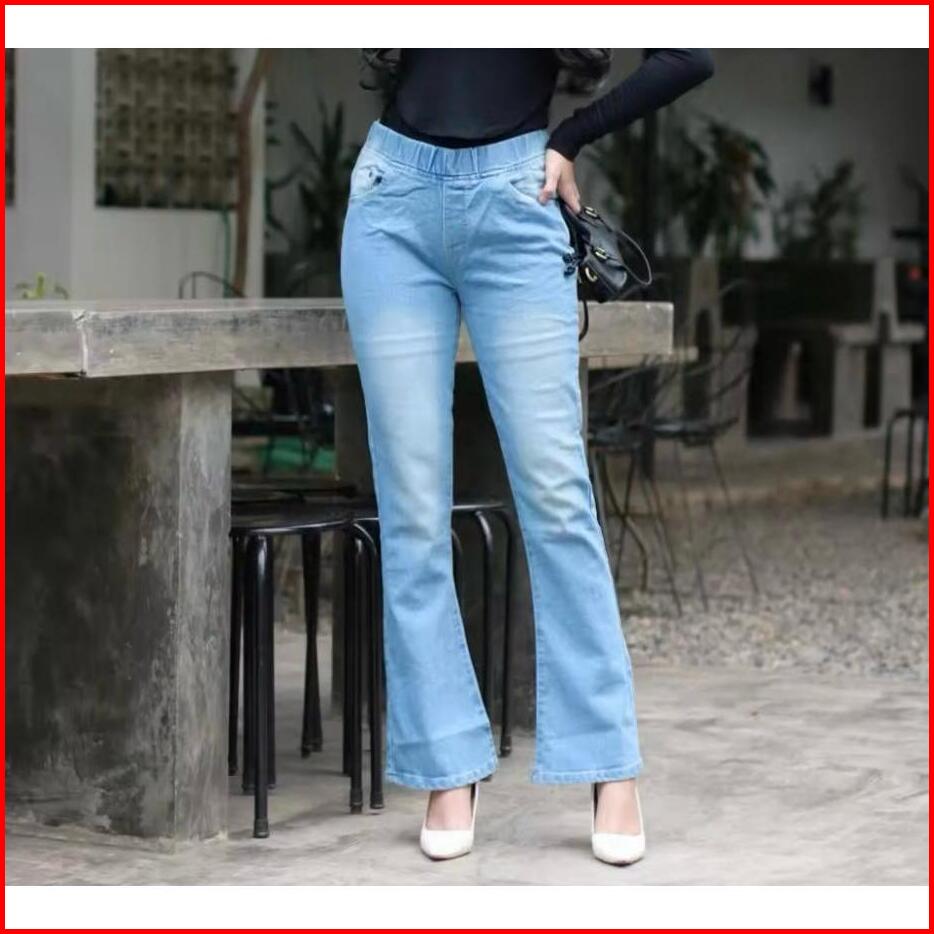 31-42 Celana Jeans Cutbray Pinggang Karet Celana Jeans Wanita Pinggang Karet Jumbo
