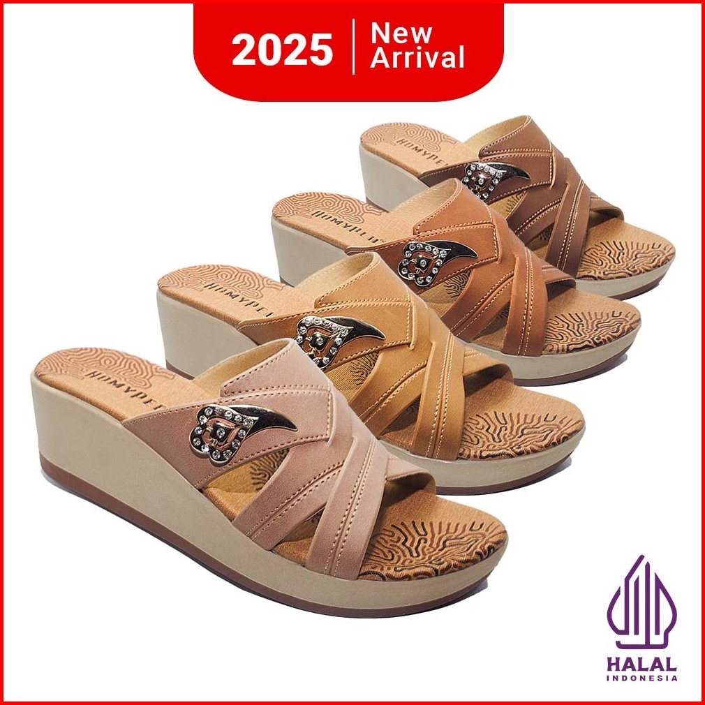 Homyped Adeeva N62 Sandal Wanita Wedges 6cm Nyaman Empuk Antislip Sandal Wanita Slop Terbaru Homyped 2024