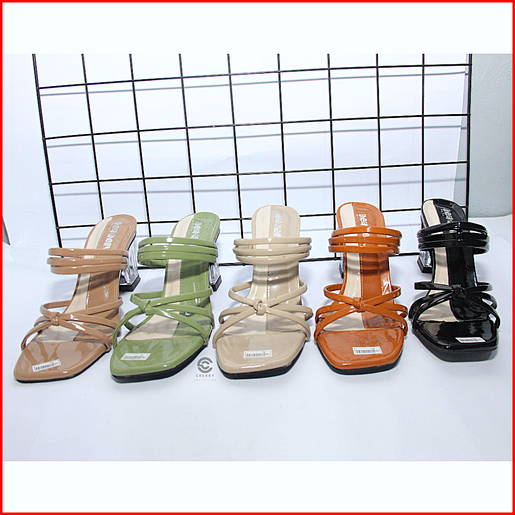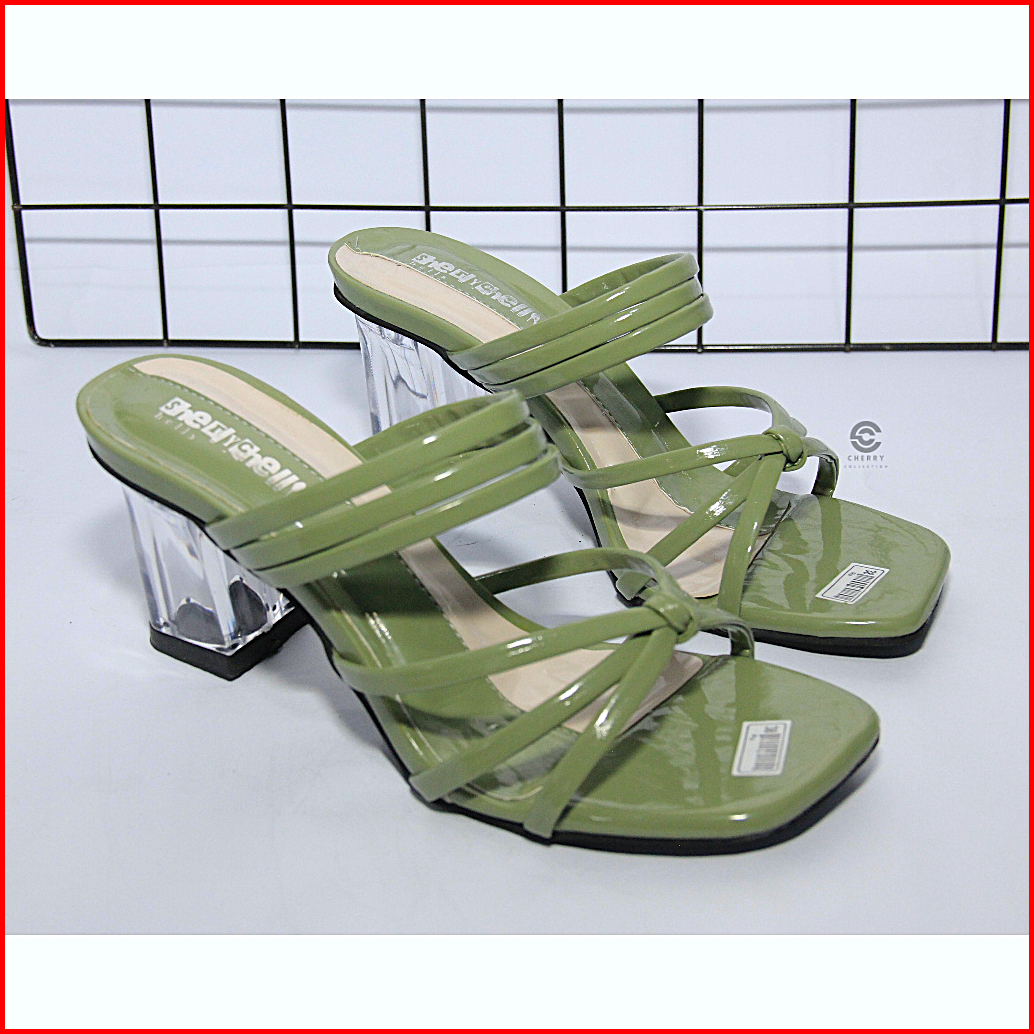 Sandal High Heels Wanita Quenssa R-07 Block Hak Kaca 7 Cm Cheels