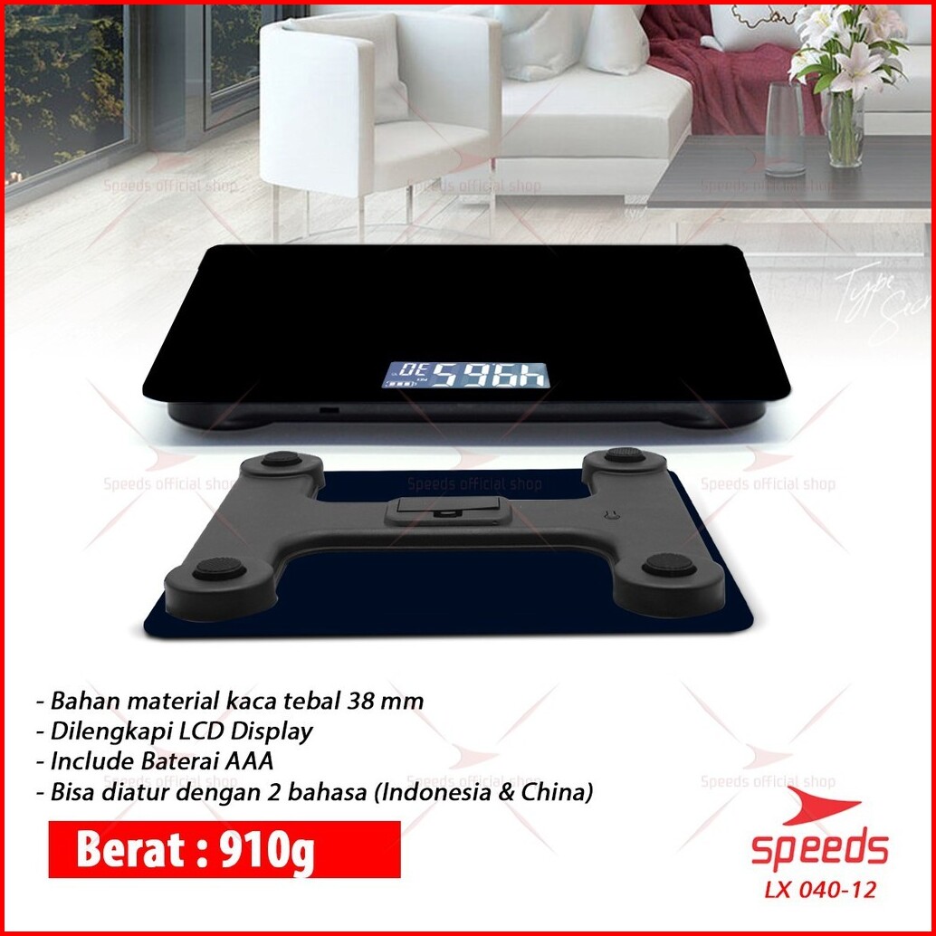 Speeds Timbangan Badan Digital 26x26 Cm Scale Kaca Berat Max 180kg Original Speeds Impor 040-12