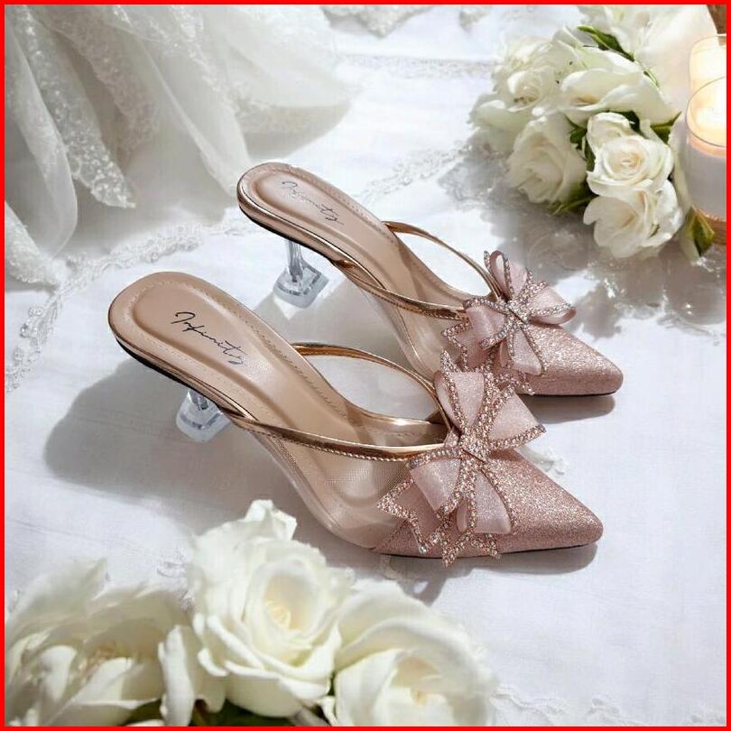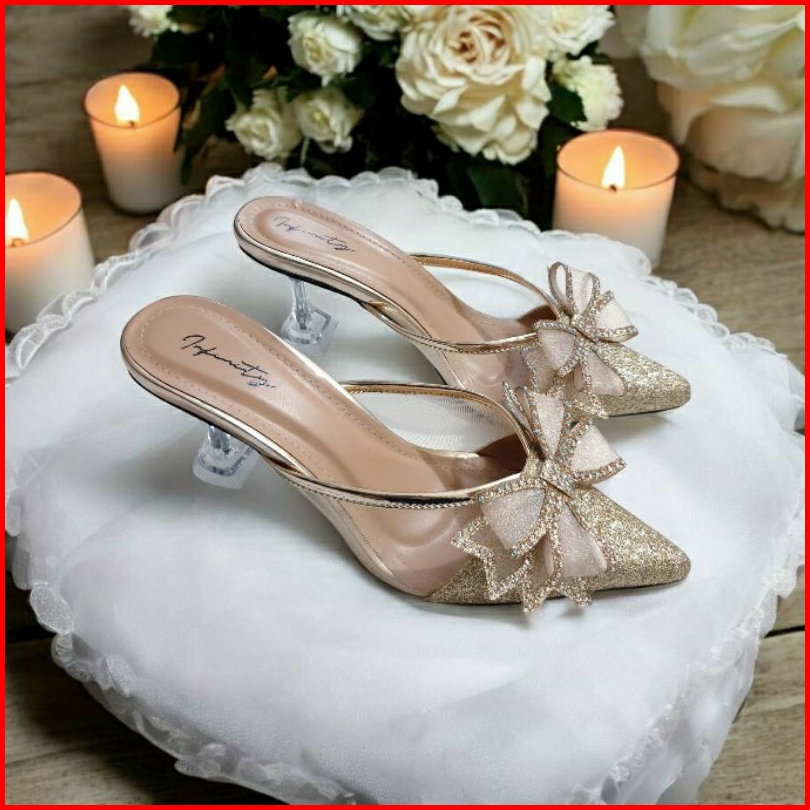 Sandal Heels Kaca 7cm Infinity Asw 015 Elegan Wedding Shoes Seserahan Pernikahan Graduation Wisuda