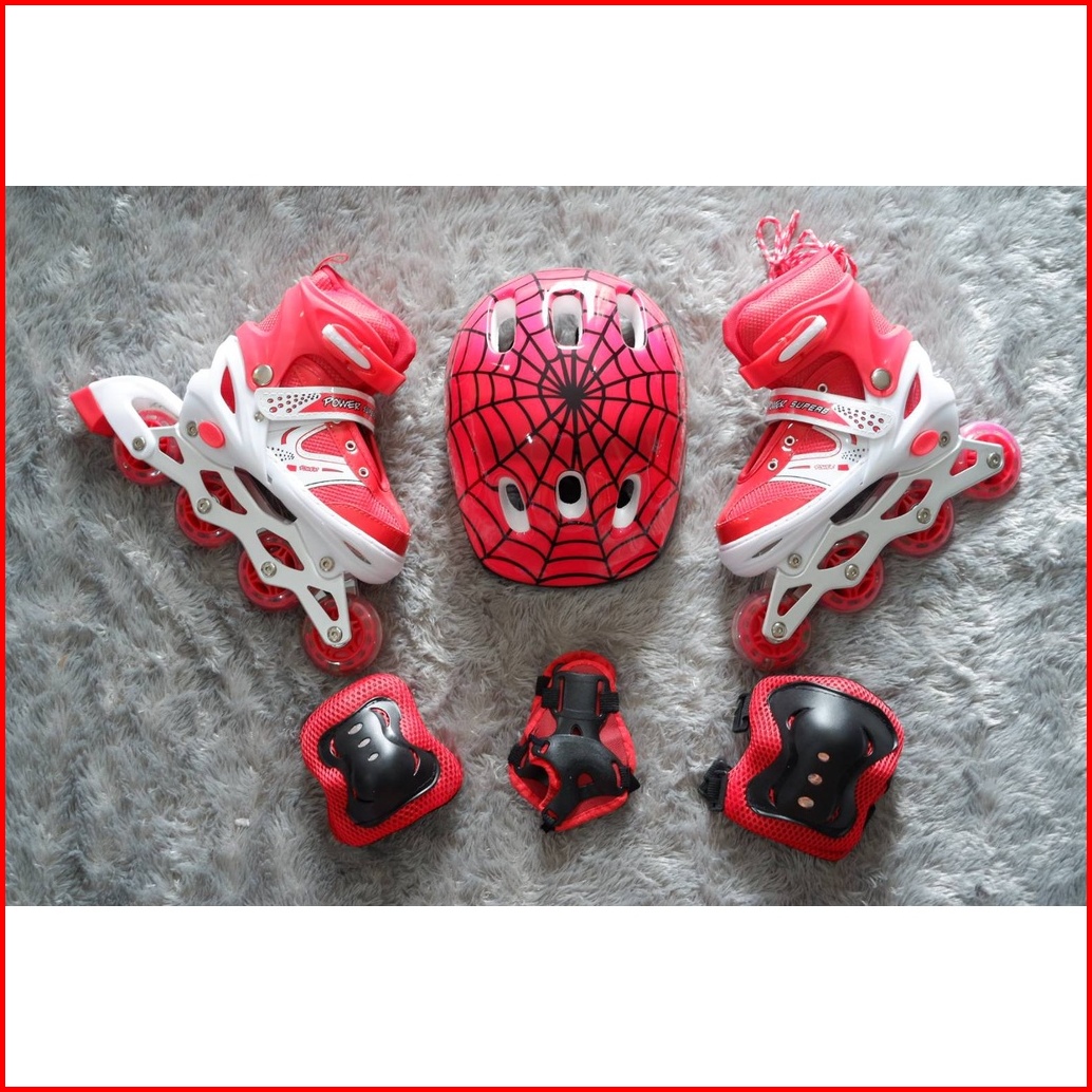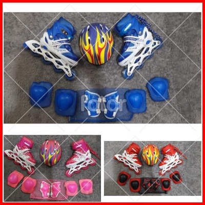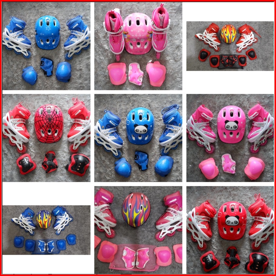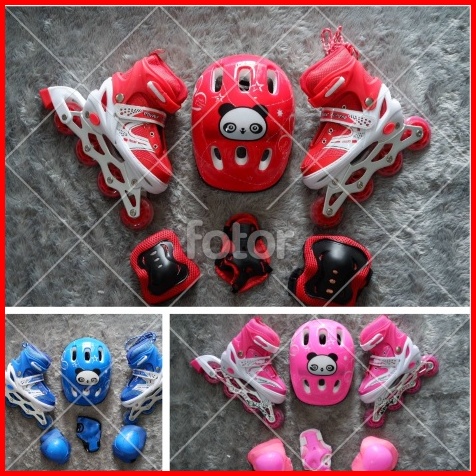 Terbaru Paket Sepatu Roda Anak Helm Deker Gambar Api Panda Dan Karakter