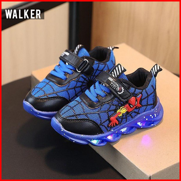 Lkm403 Sepatu Sport Spiderman Anak Laki-laki Casual Bayi Lampu Led Sekolah 1kg 3pc Ibu Bayi