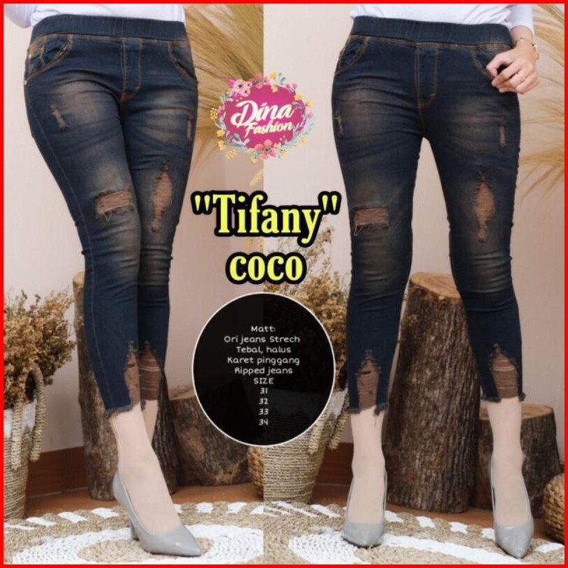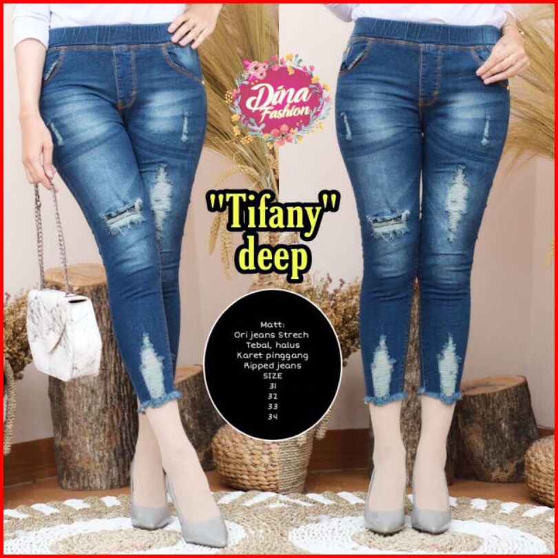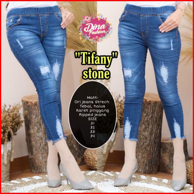 Tifany Jeans 7 9 Pinggang Karet . Jeans Wanita Sobek Ppy