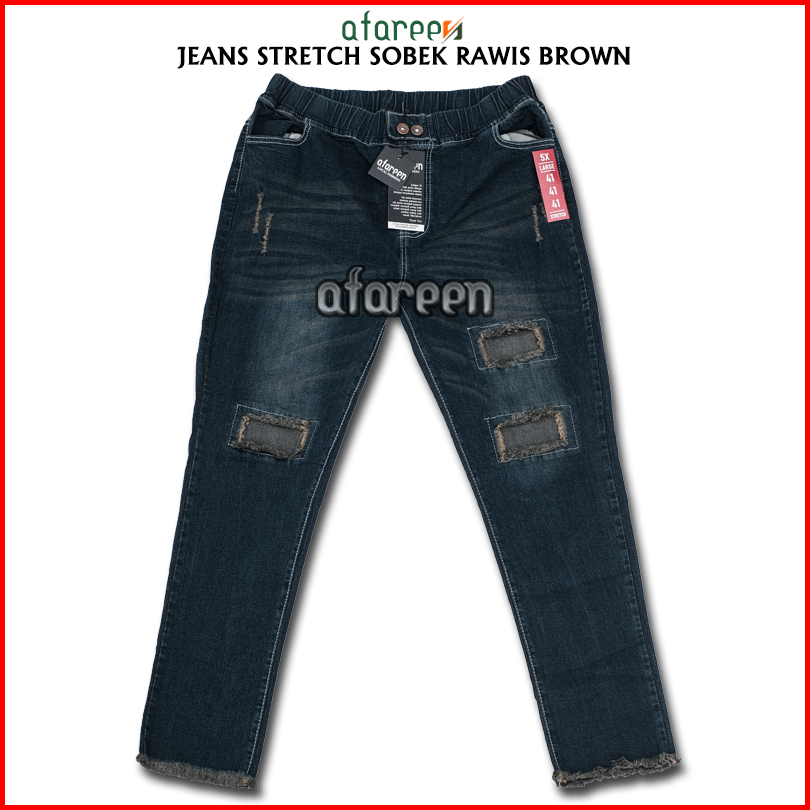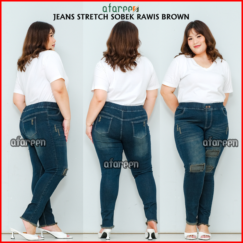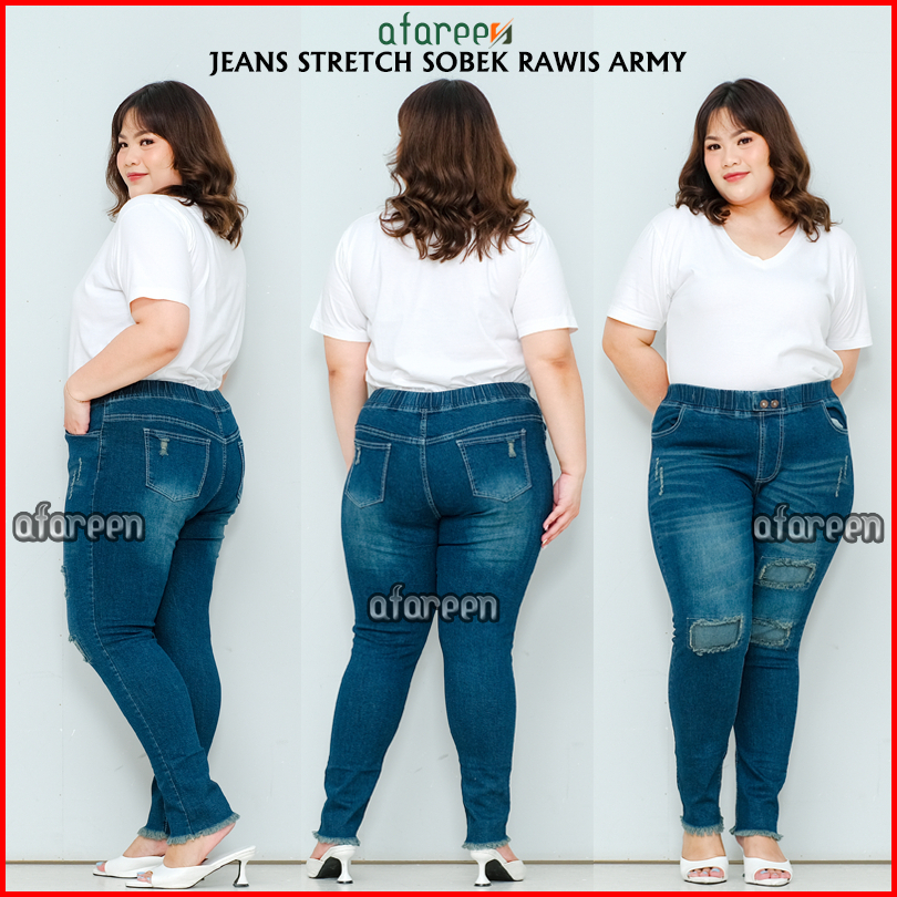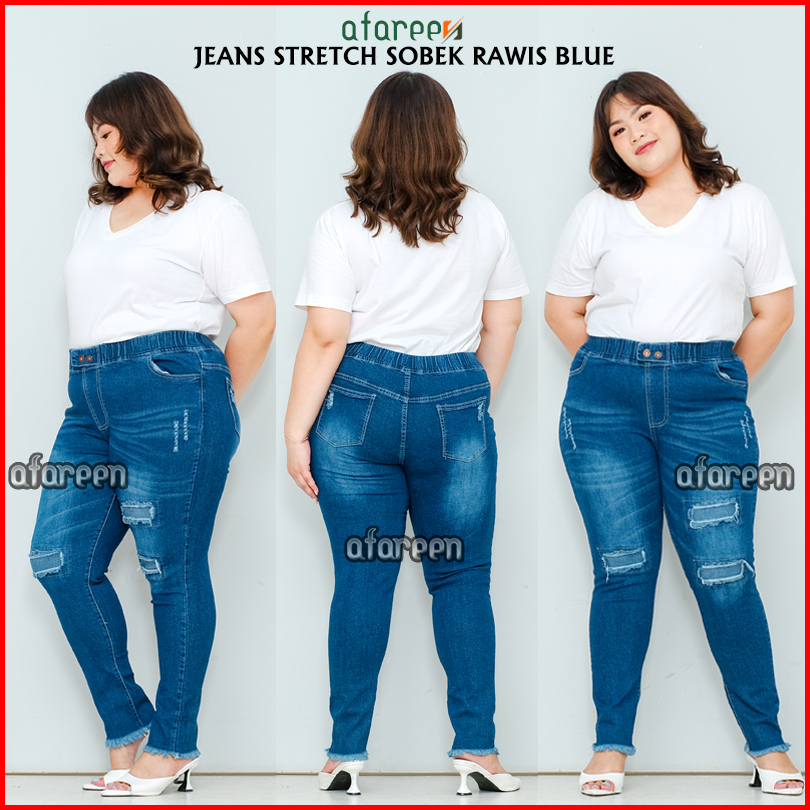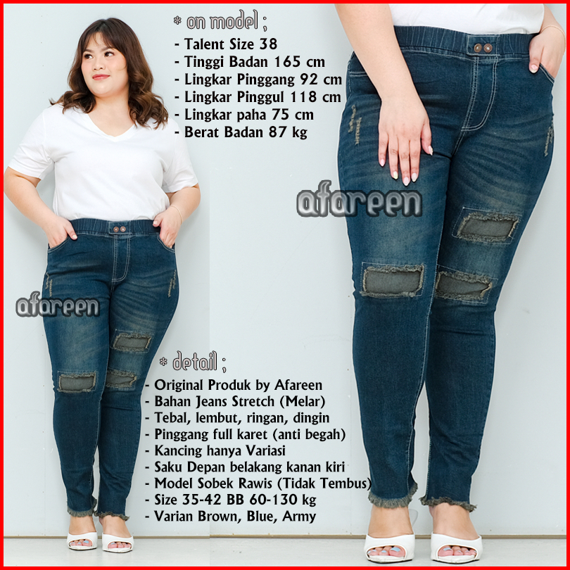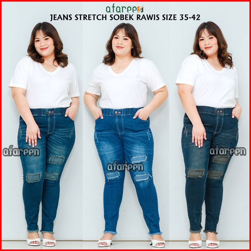 Afareen - Celana Jeans Wanita Jumbo Legging Jeans Ripped Wisker Sobektidak Tembus Jumbo 35-42