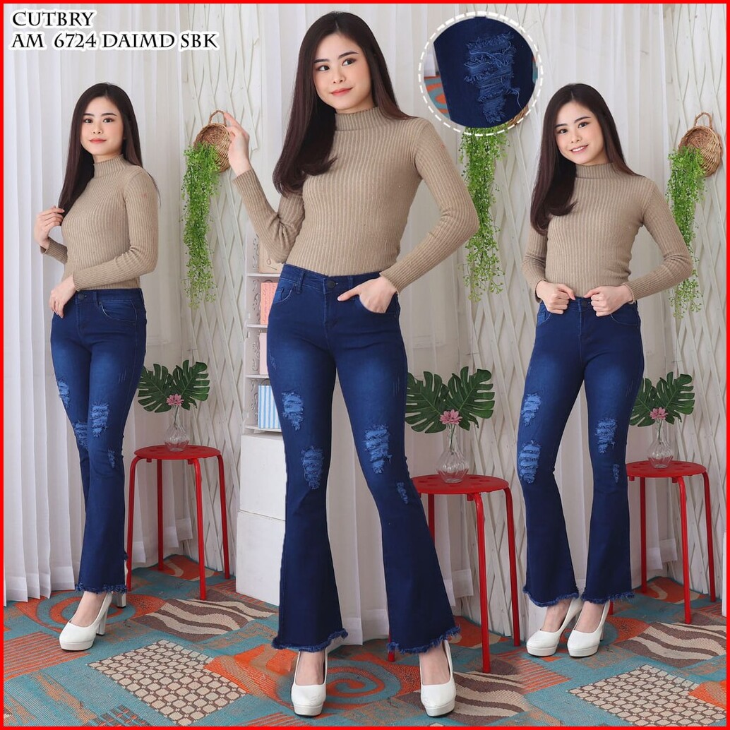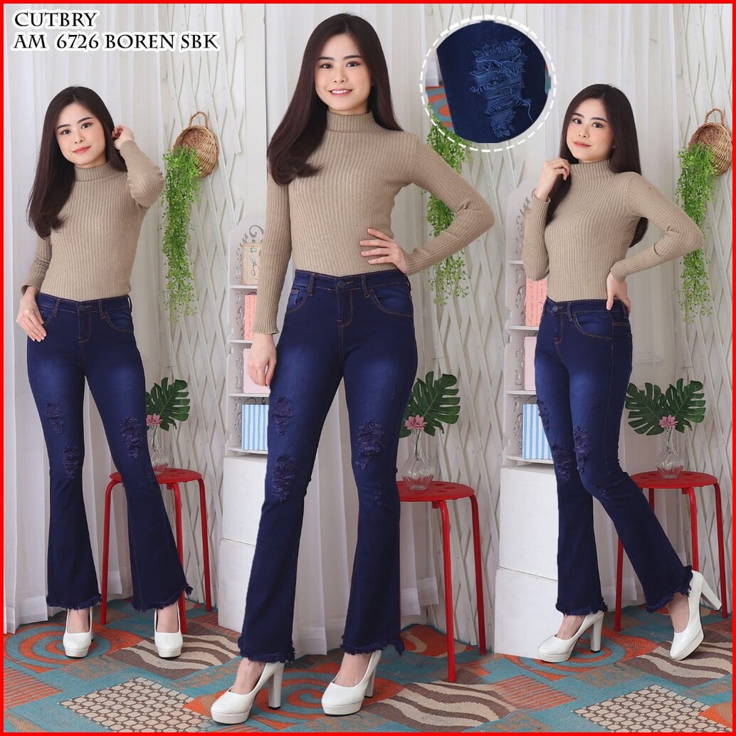 Size 27-34 Mc Girl Celana Jeans Cutbray Sobek Rawis Cutbray Sobek Rumbai Cutbray Jeans Ripped