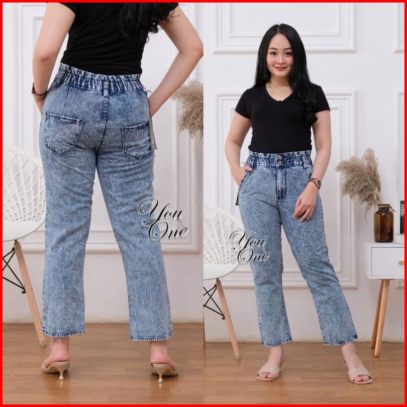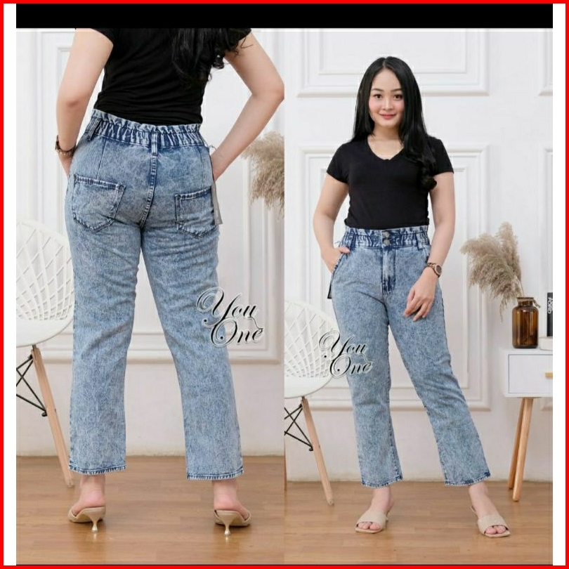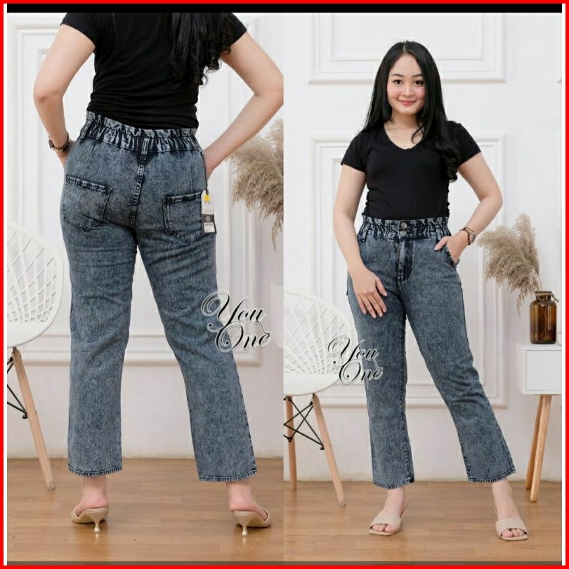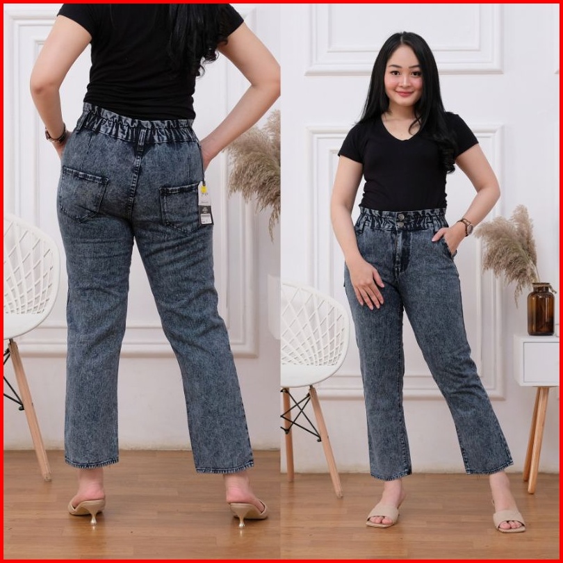 Celana Jeans Boyfriend Celana Jeans Bf Highwaist Pinggang Karet Kancing 2