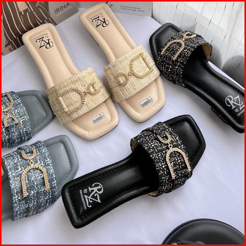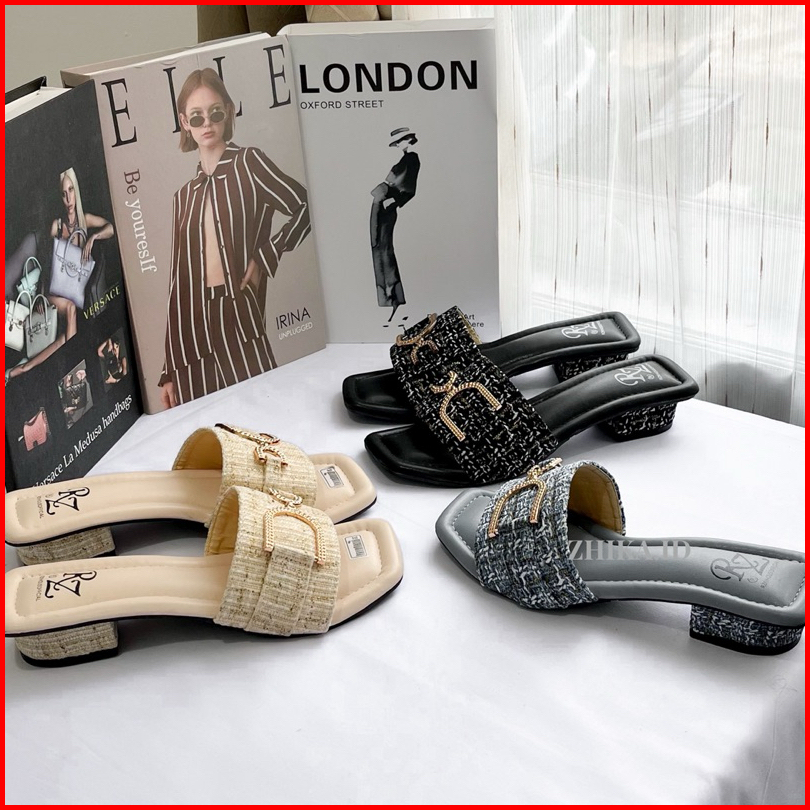 Nimue Sandal Wanita Heels 3cm Sendal Cewek Bahan Tweed Lucu Korean Style-nimue