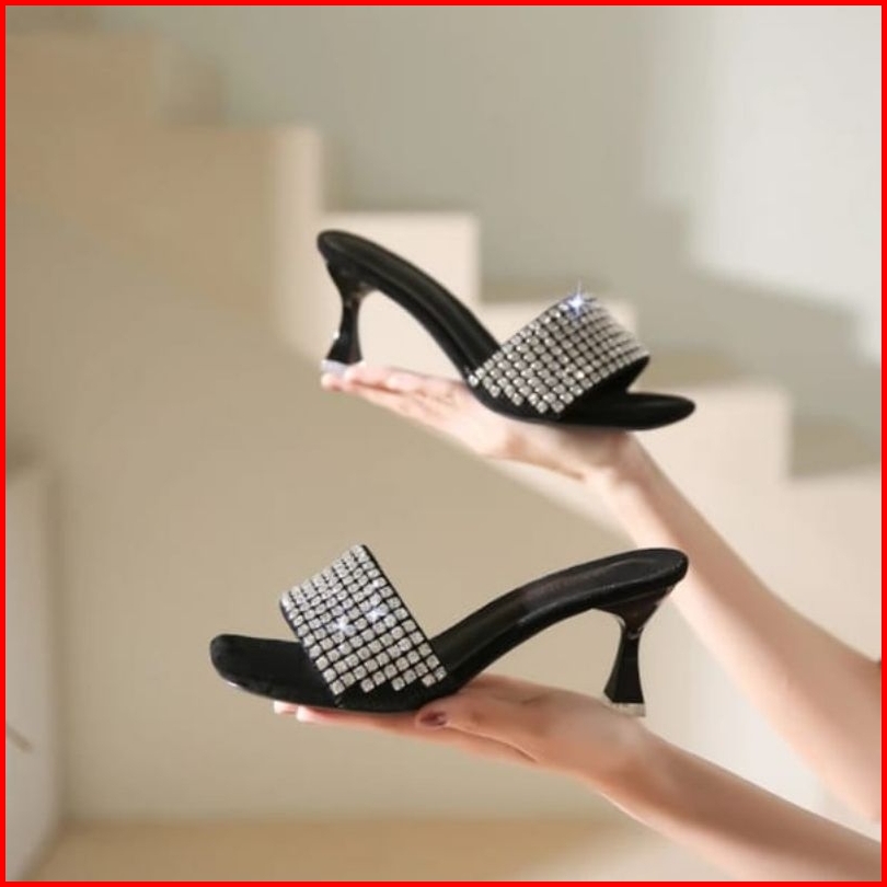 Series Bc 03 Sandal Wanita High Heels Pesta Hak Lancip Stiletto 7 Cm Diamond Heel
