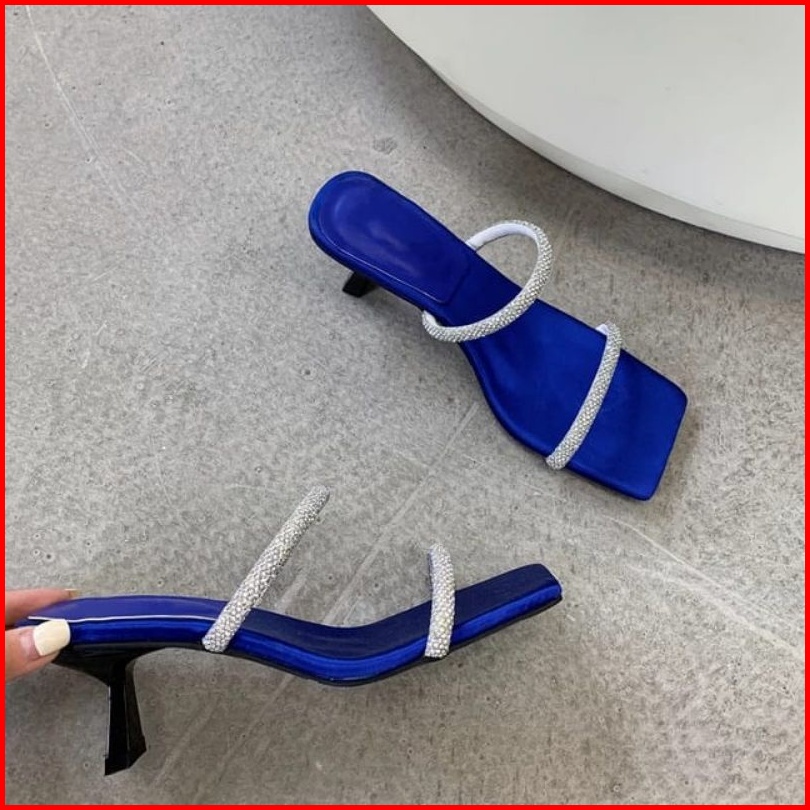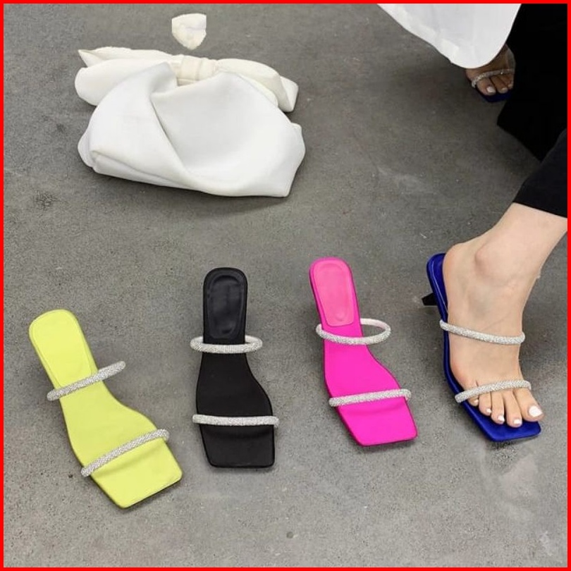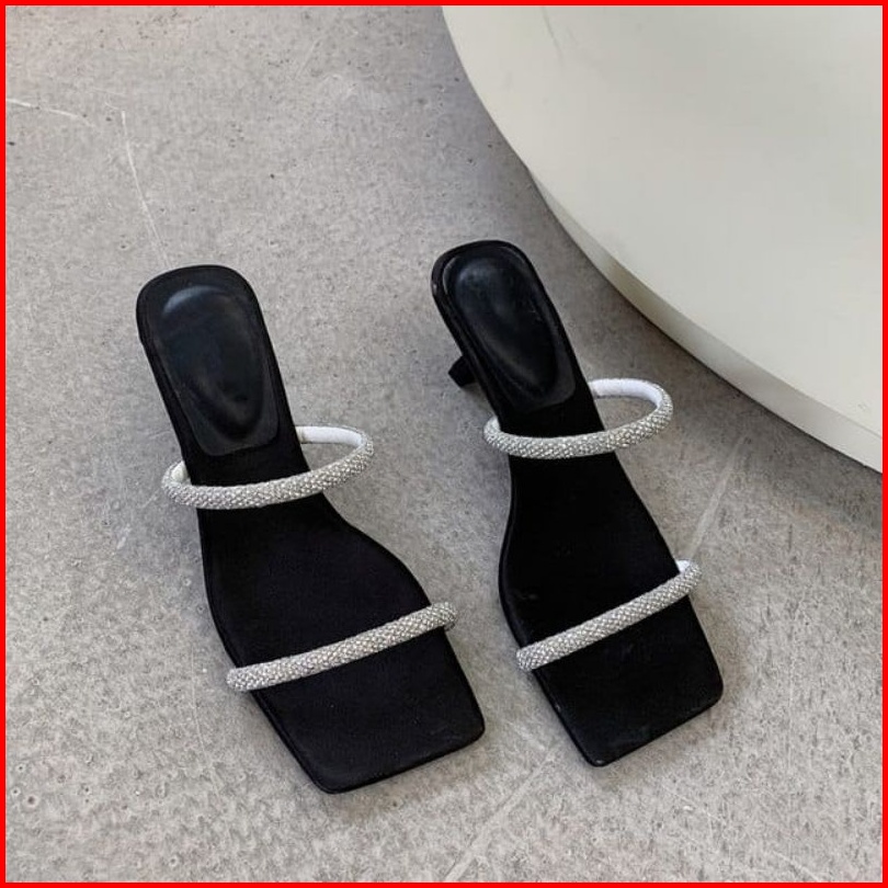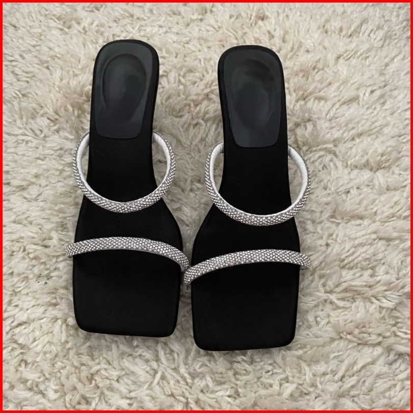 Dcollection Ar 02 Sandal Heels Wanita Stiletto Hak Tinggi 7 Cm Tali Permata Import