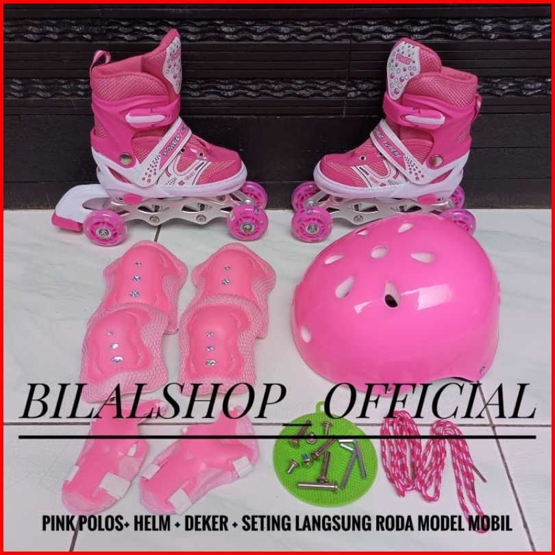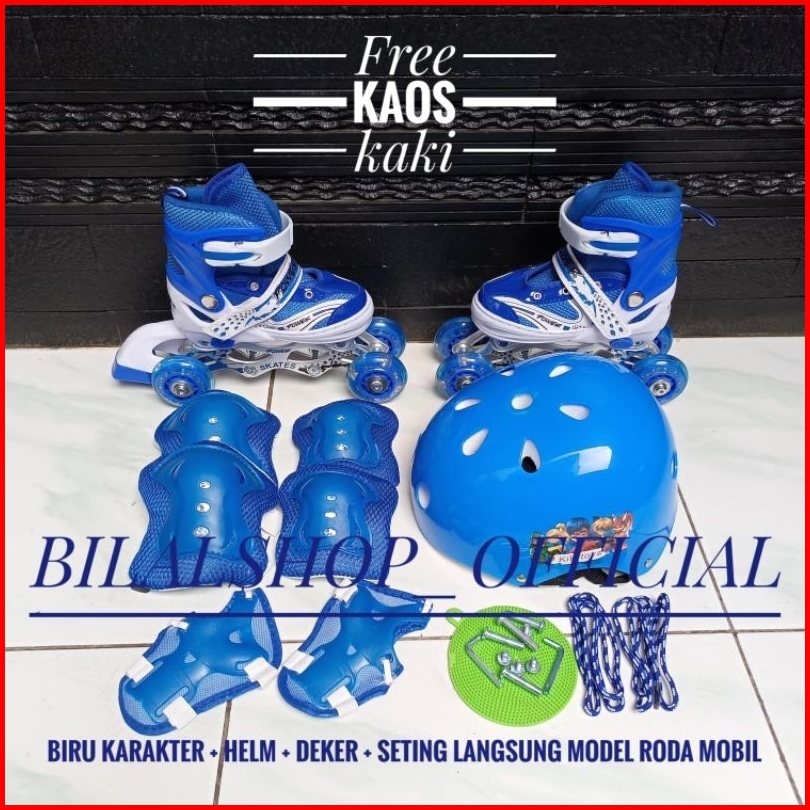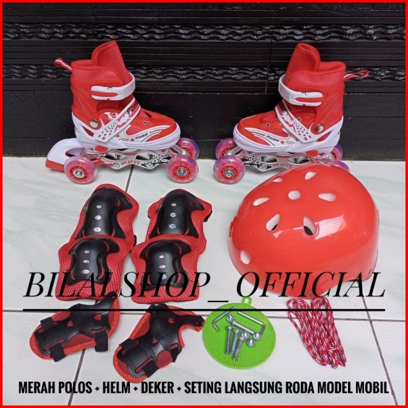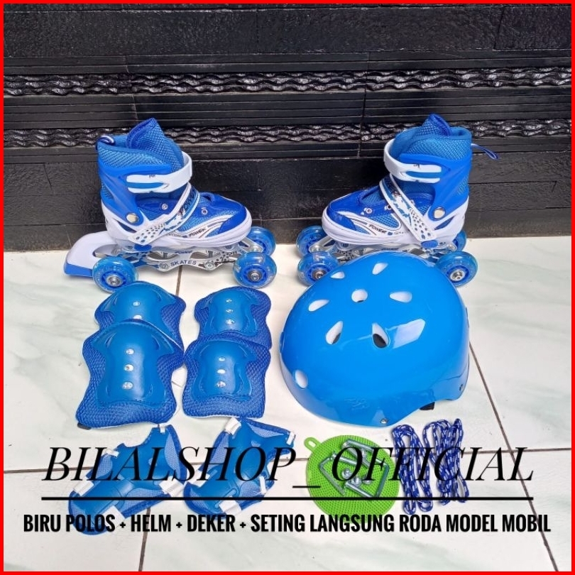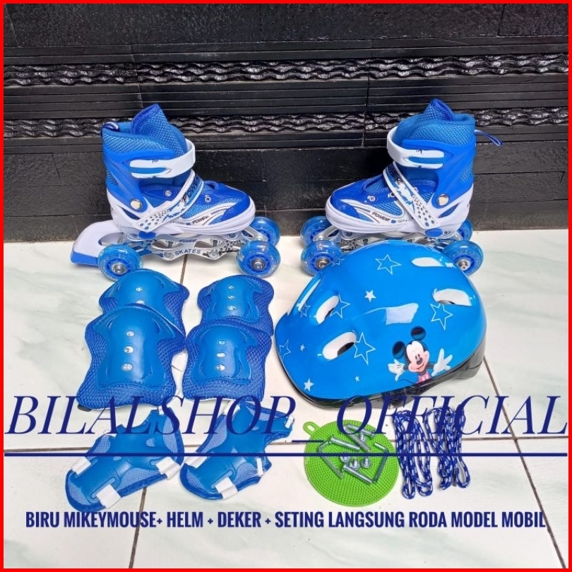 Sepatu Roda Anak Fullset Pengaman Sikut Lutut Tangan Dan Helm Model Mobil Bajaj Dan Sejajar