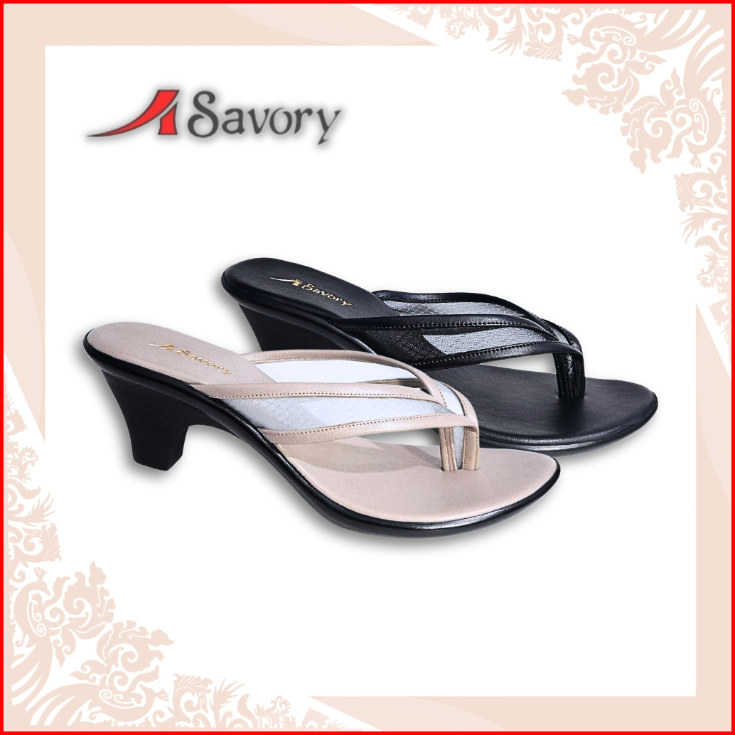 Savory Sz. 36-40 Sandal Medium Cone Heels Wanita Ibu Jepit Hw625