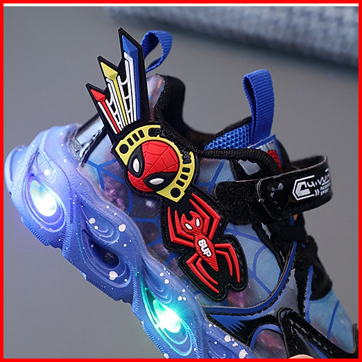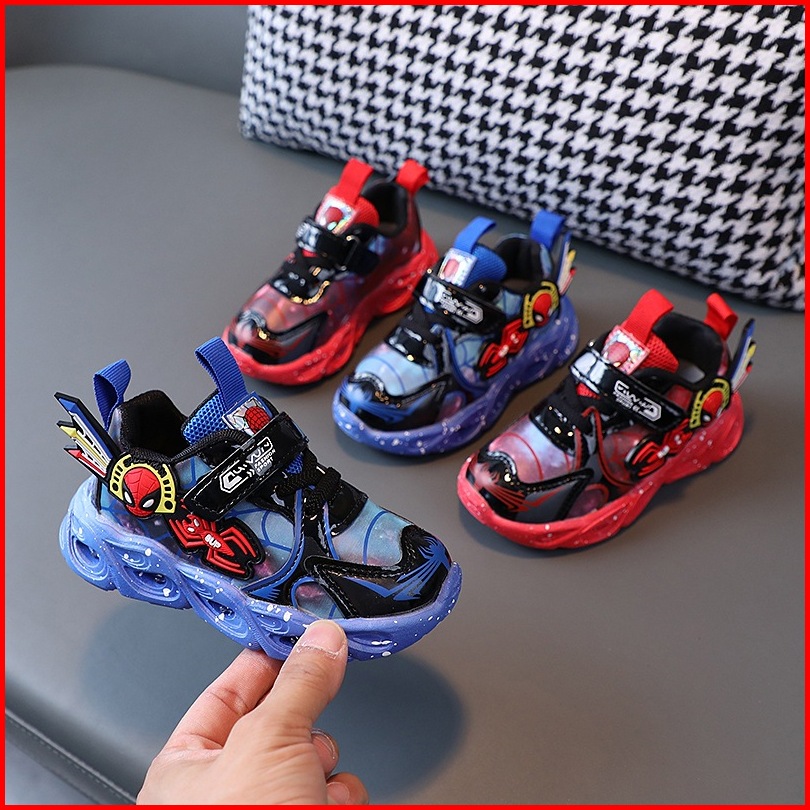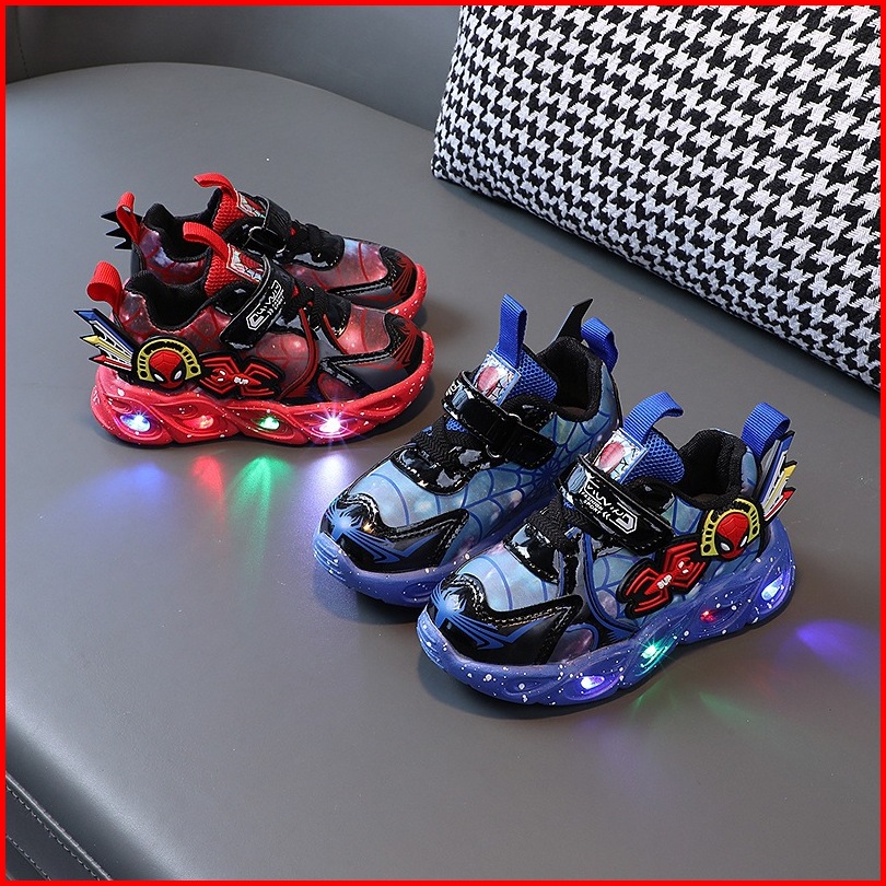 Tssa034 Sepatu Anak Laki-laki Dengan Lampu Led Motif Spiderman Free Box
