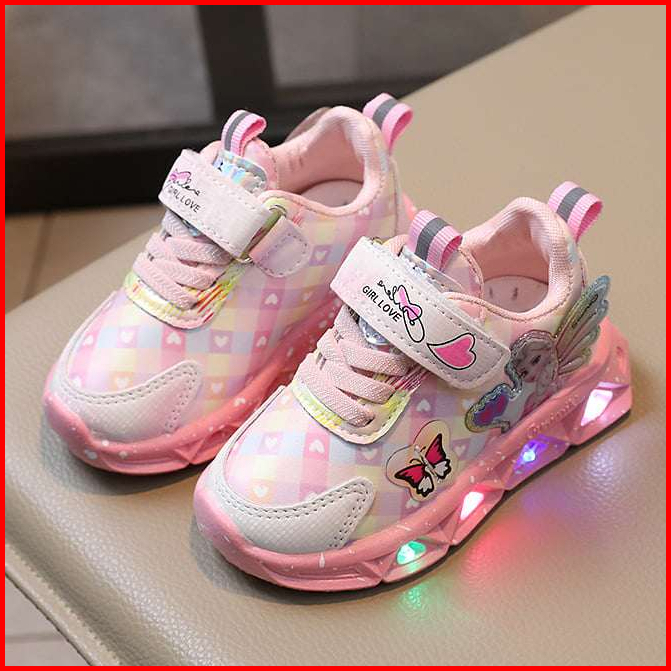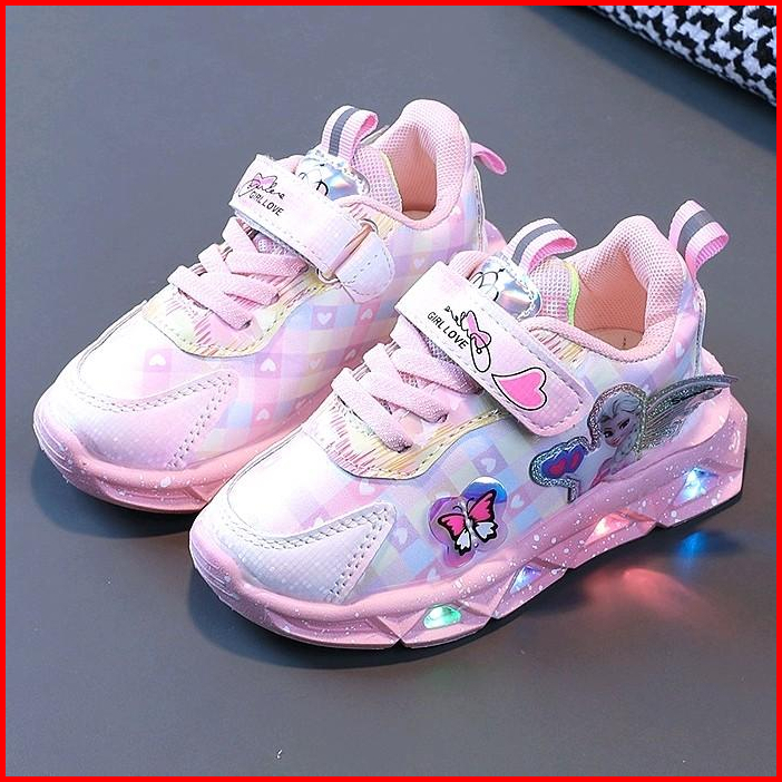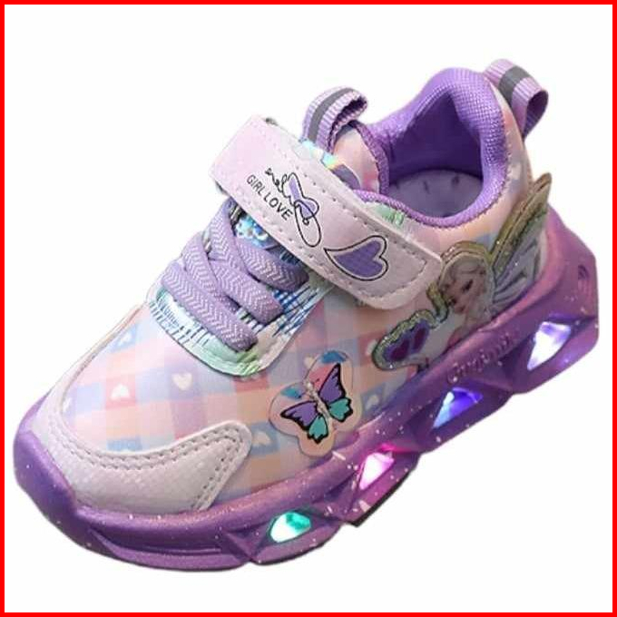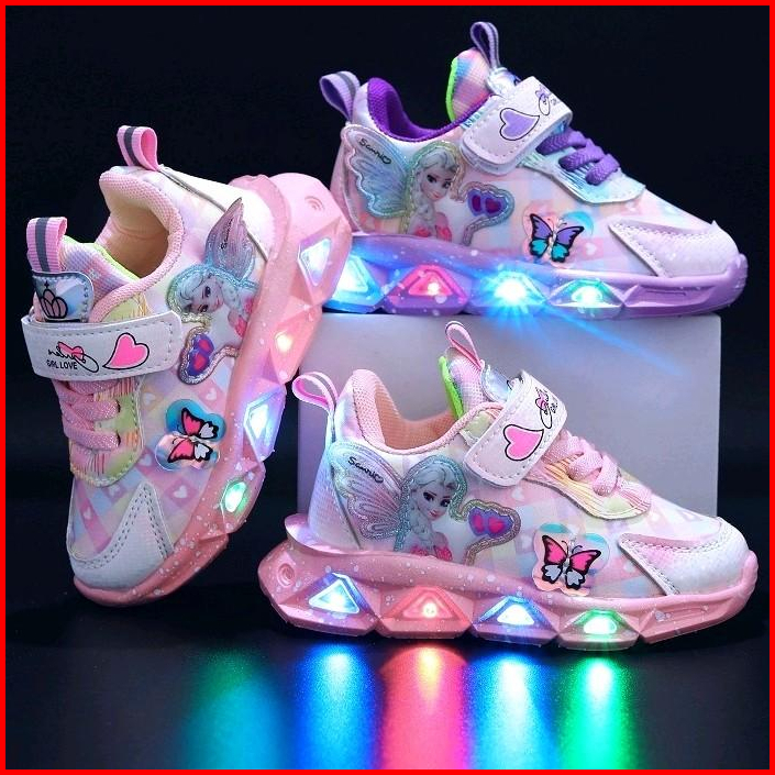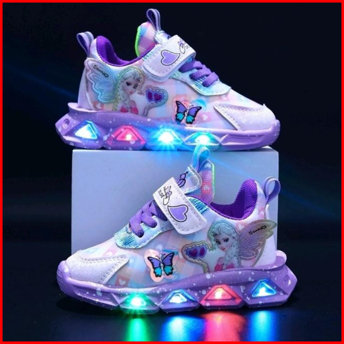 Sepatu Anak Cewek Casual Led Frozen Fashion Import Bahan Lentur Dan Anti Slip 21-35