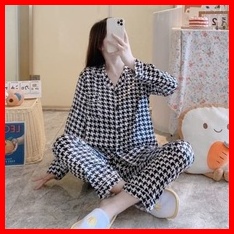 Redpink Set Piyama Women Hijab Kekinian Import Quality Kerah Kemeja With Saku Baju Kancing Clasic Long Sleeve Fit Long P