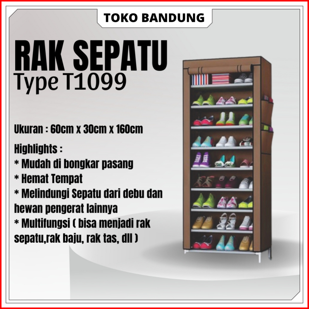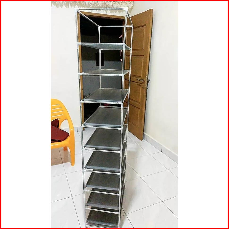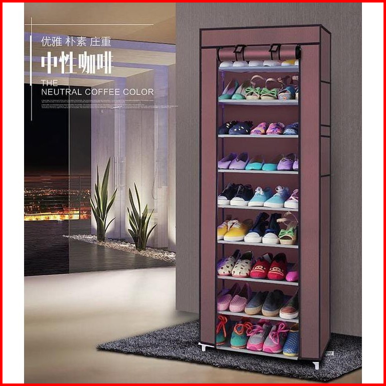Omg Rak Sepatu 10 Tingkat Cover Debu Polos 9 Ruang Portable Shoes Rack Rak Sepatu Cm 60 X 160 Susun Rakitan Shoes