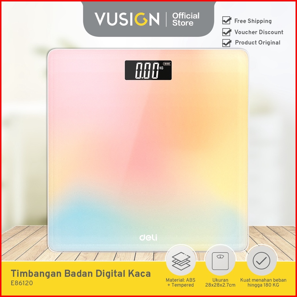 Vusign Body Scale Timbangan Badan Digital Kaca 180 Kg 26 X 26 Cm Tingkat Akurasi Tinggi E86120