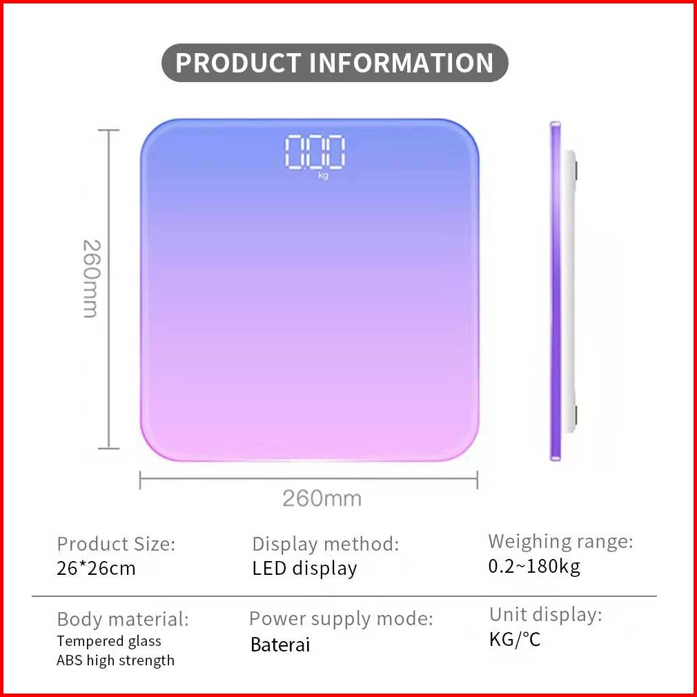 Timbangan Badan Usb - Baterai Digital Smart Scale - Timbangan Badan Digital Gradien Ungu Usb Dengan Led Display