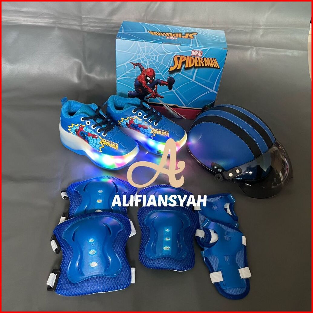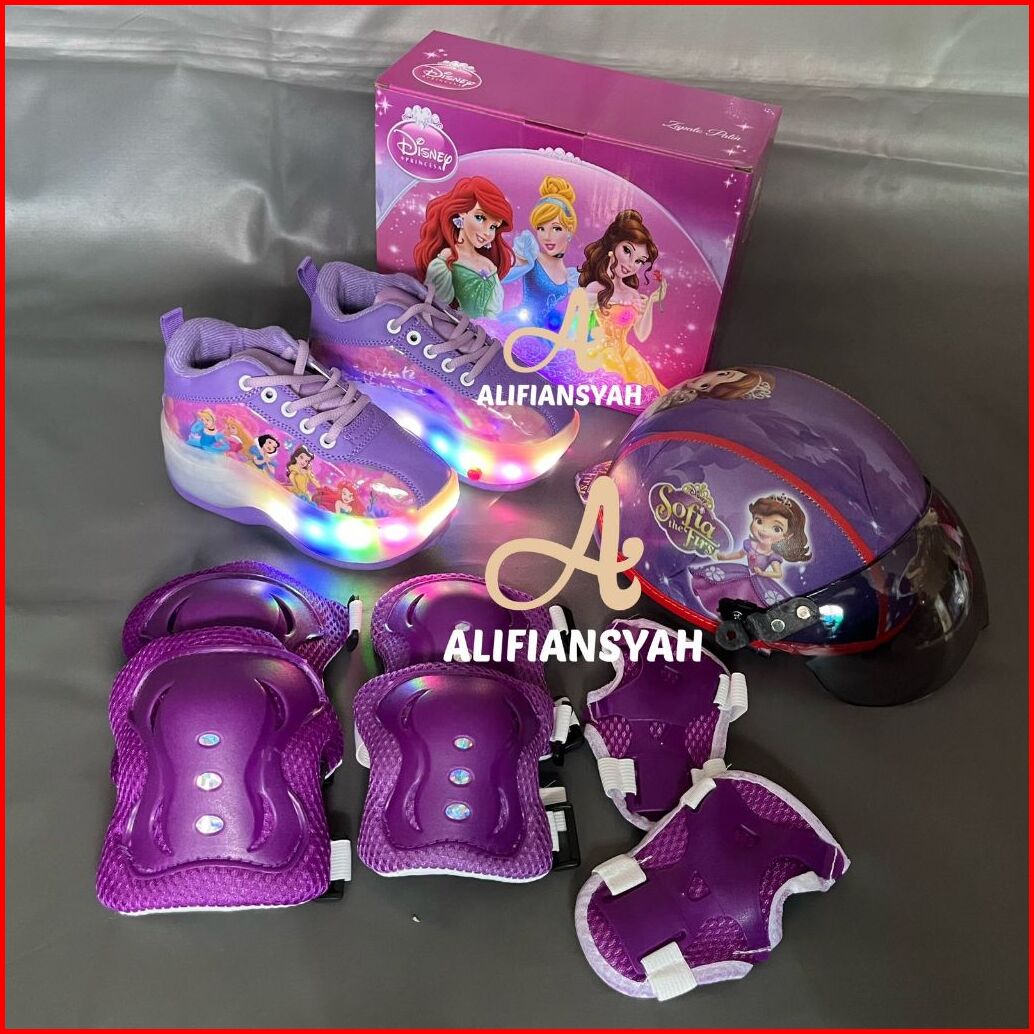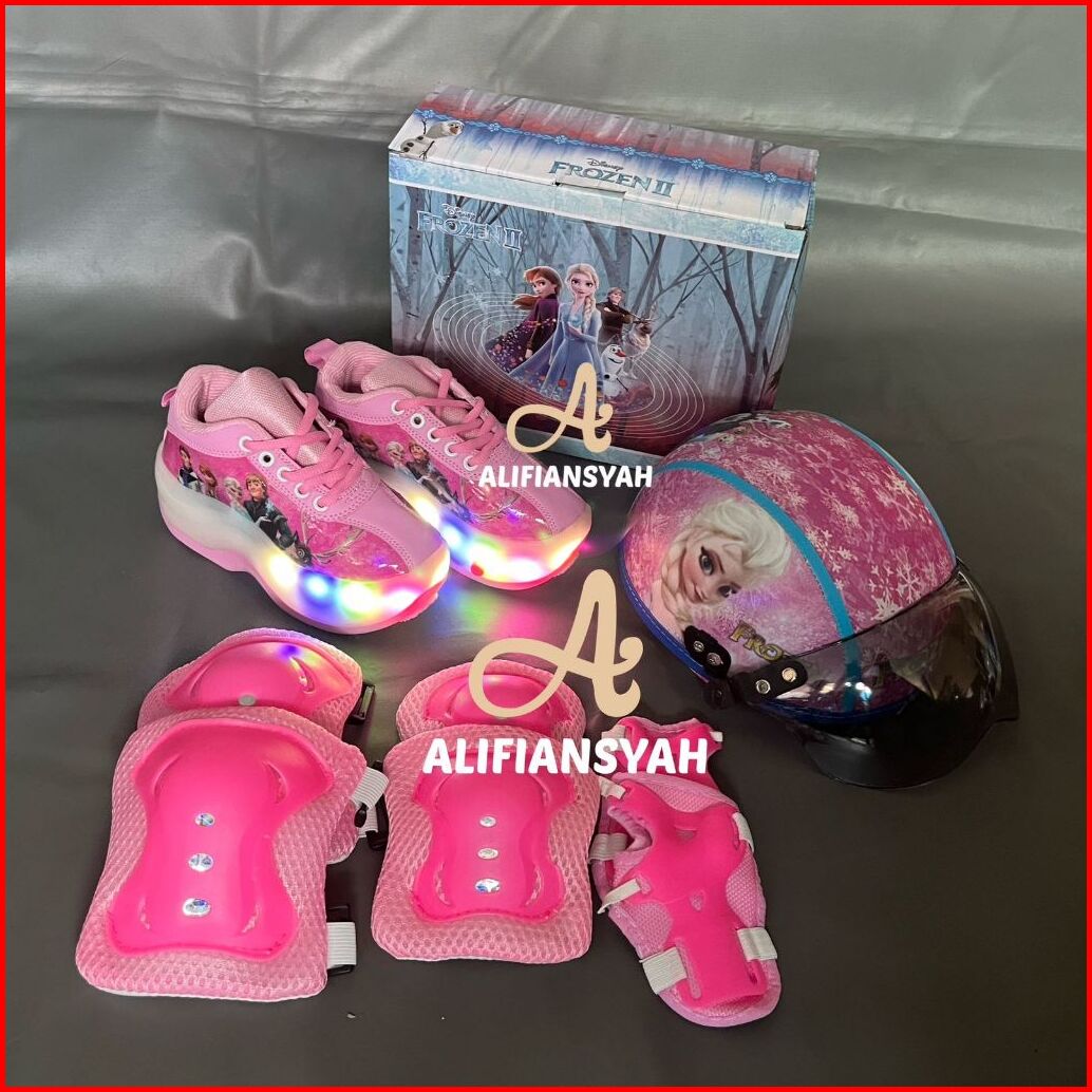 Sepatu Roda Anak Karakter 2in1 Fullset Pelindung Dan Helm Model Mobil