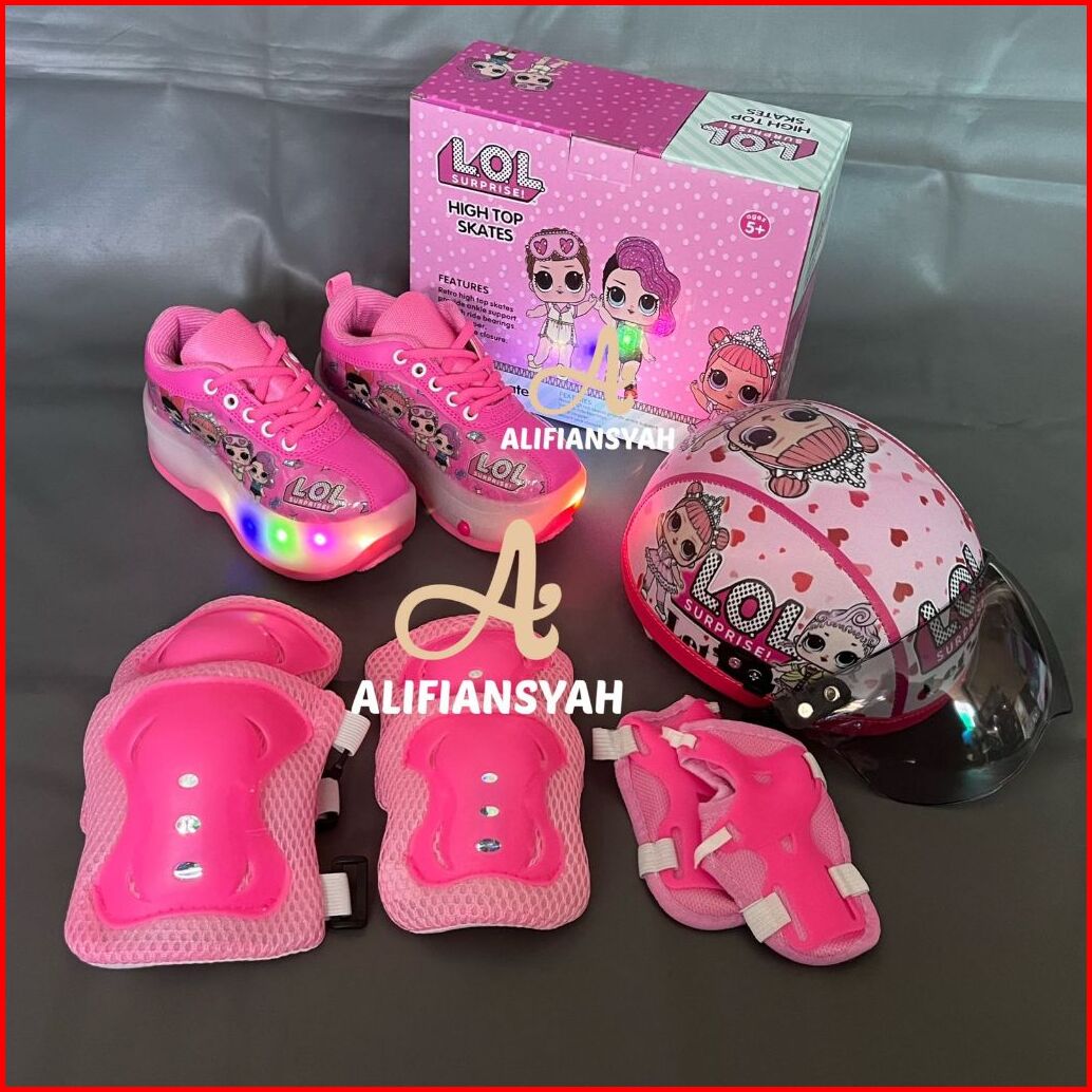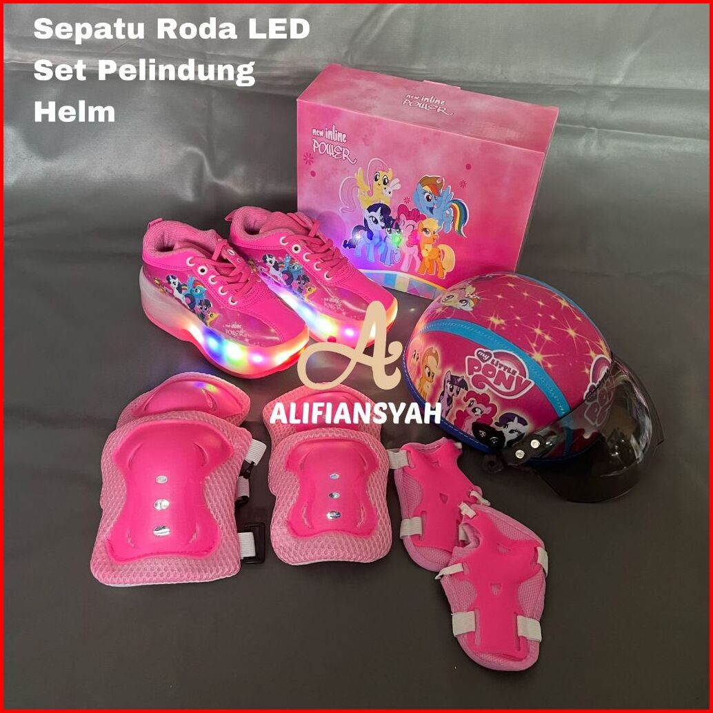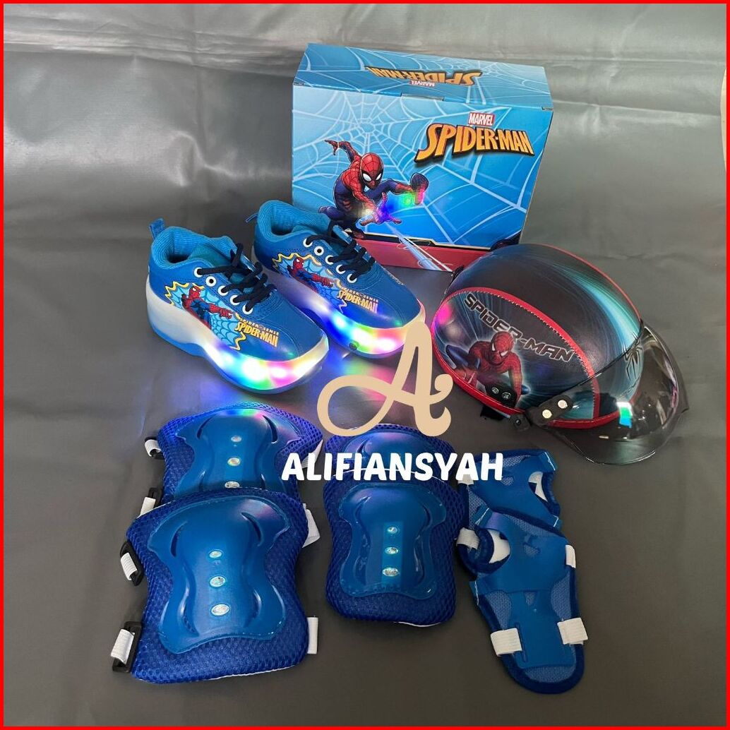 Sepatu Roda Anak Karakter 2in1 Fullset Pelindung Dan Helm Model Mobil