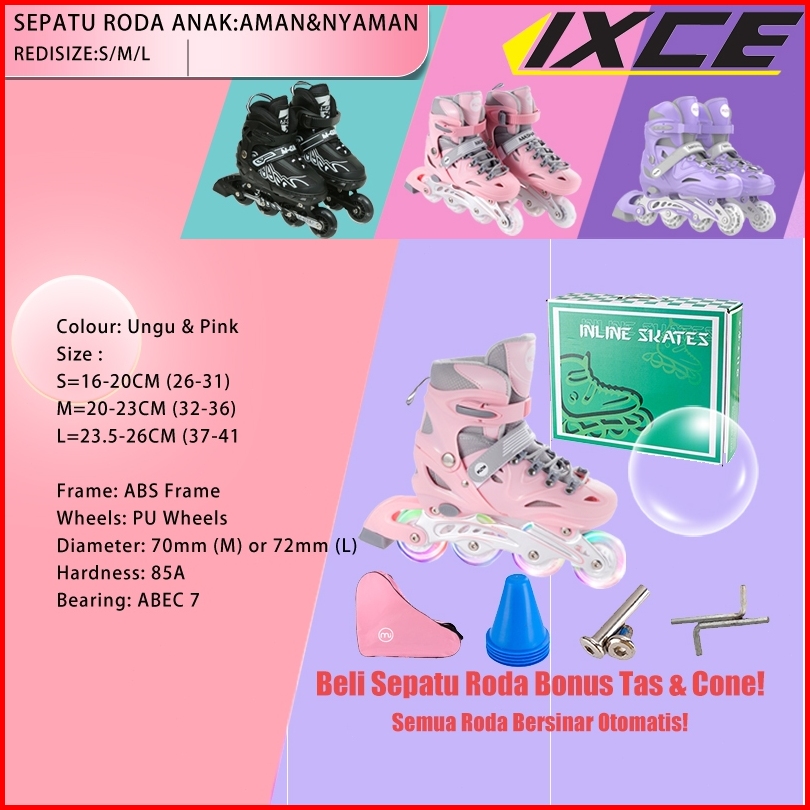 Ixce Sepatu Roda Anak Adjustable - Lampu Led Bisa Diatur Ukuran 28-32 Free Tas