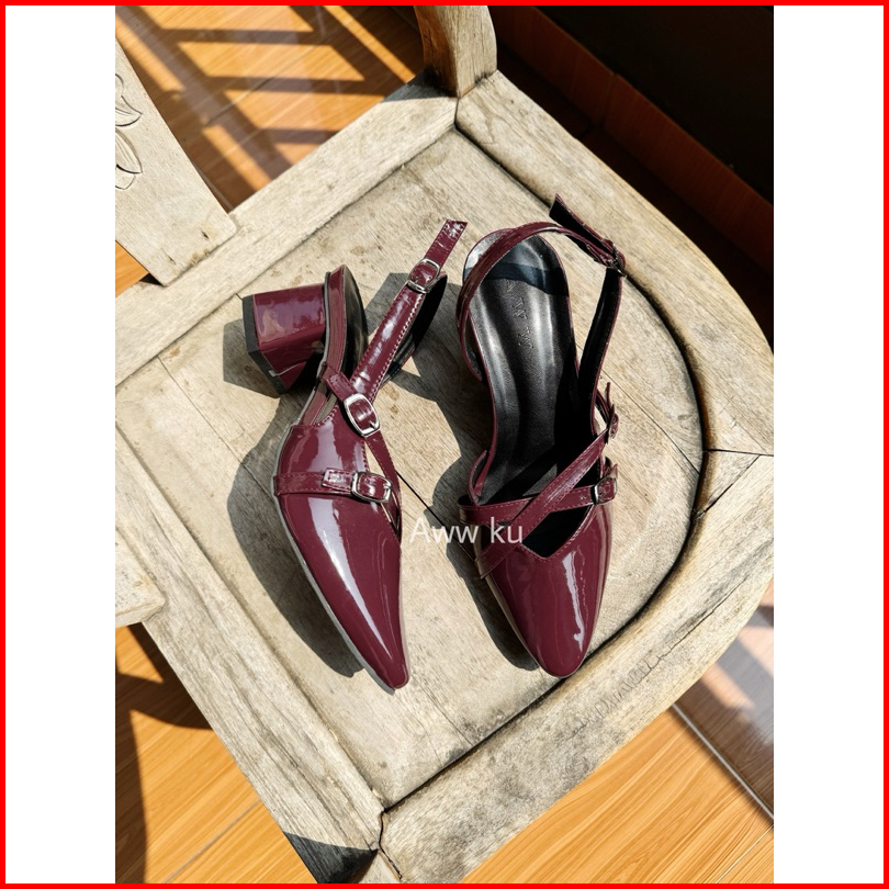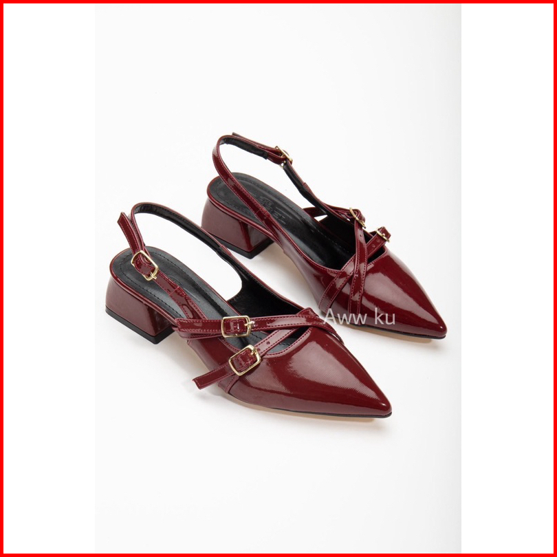 Azzura Heels Elegan Burgundy Perempuan 5cm Aw 13 Kaki Gemuk Upsize 1 Ukuran