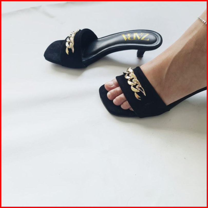 Chain Heels Blacksuede 3cm Box Polos - Local Handmade Premium New