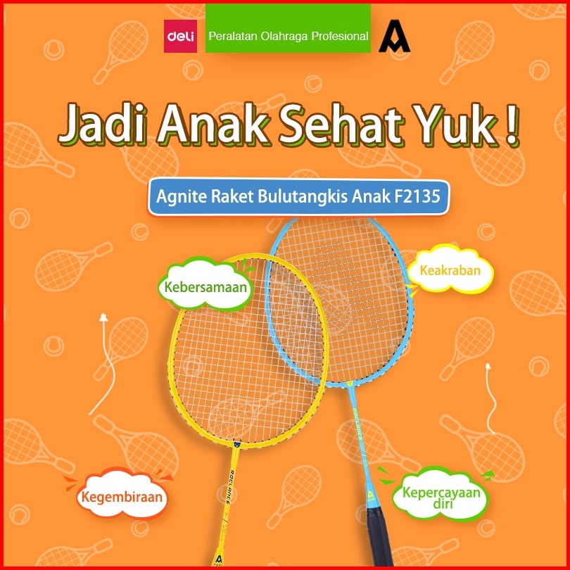 Agnite Children Badminton Racket Raket Badminton Bulu Tangkis Anak Alat Olahraga High Quality F2135