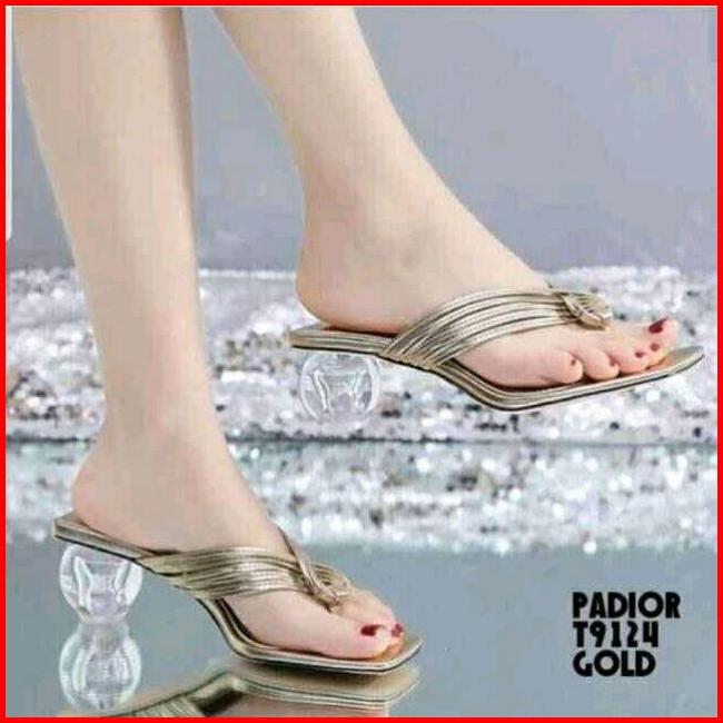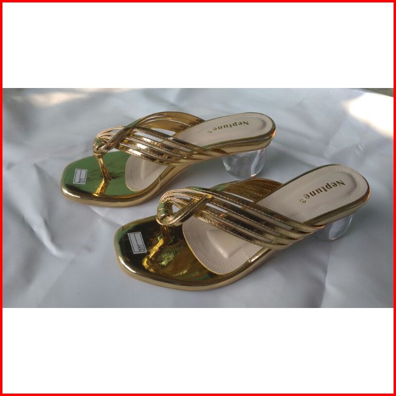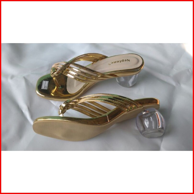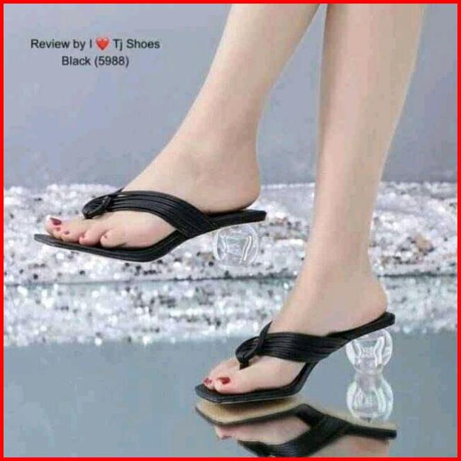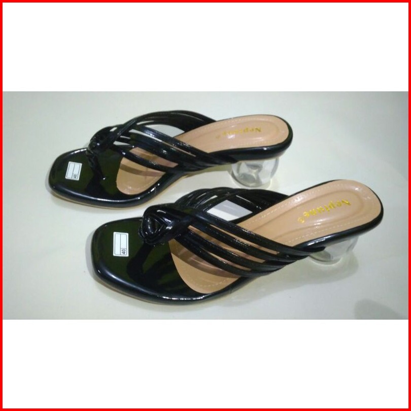Sandal Wanita Hak Kaca Bulat Dengan Tali Jepit Sintesis Glossy H05