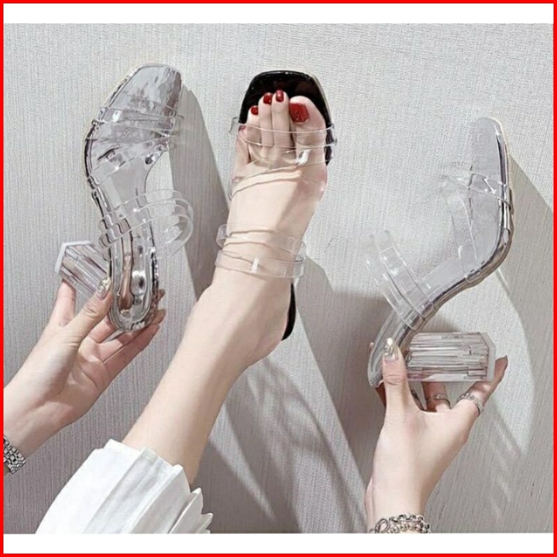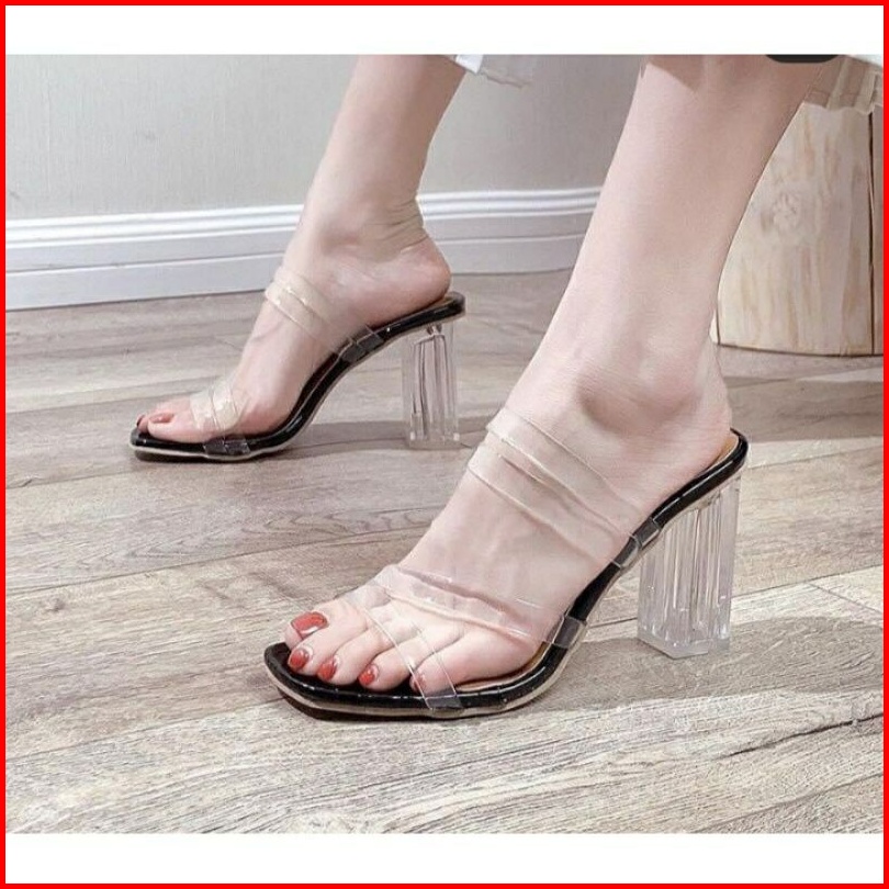 Heels Hak Tahu Kaca Glosy 7cm Beauty Fashion Big Size 35-42