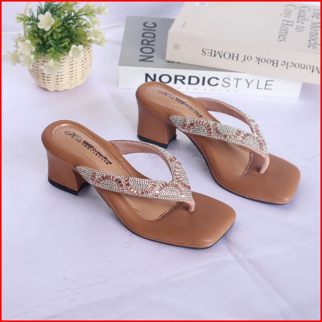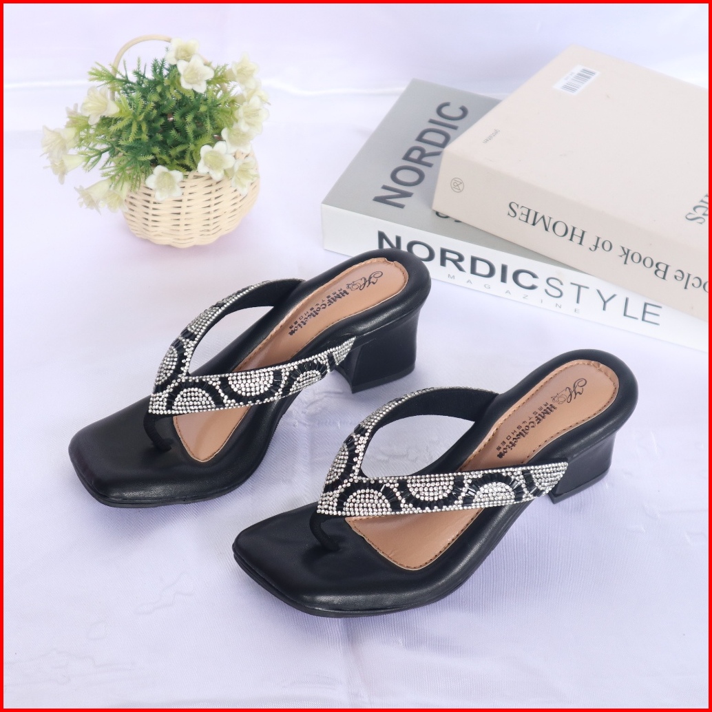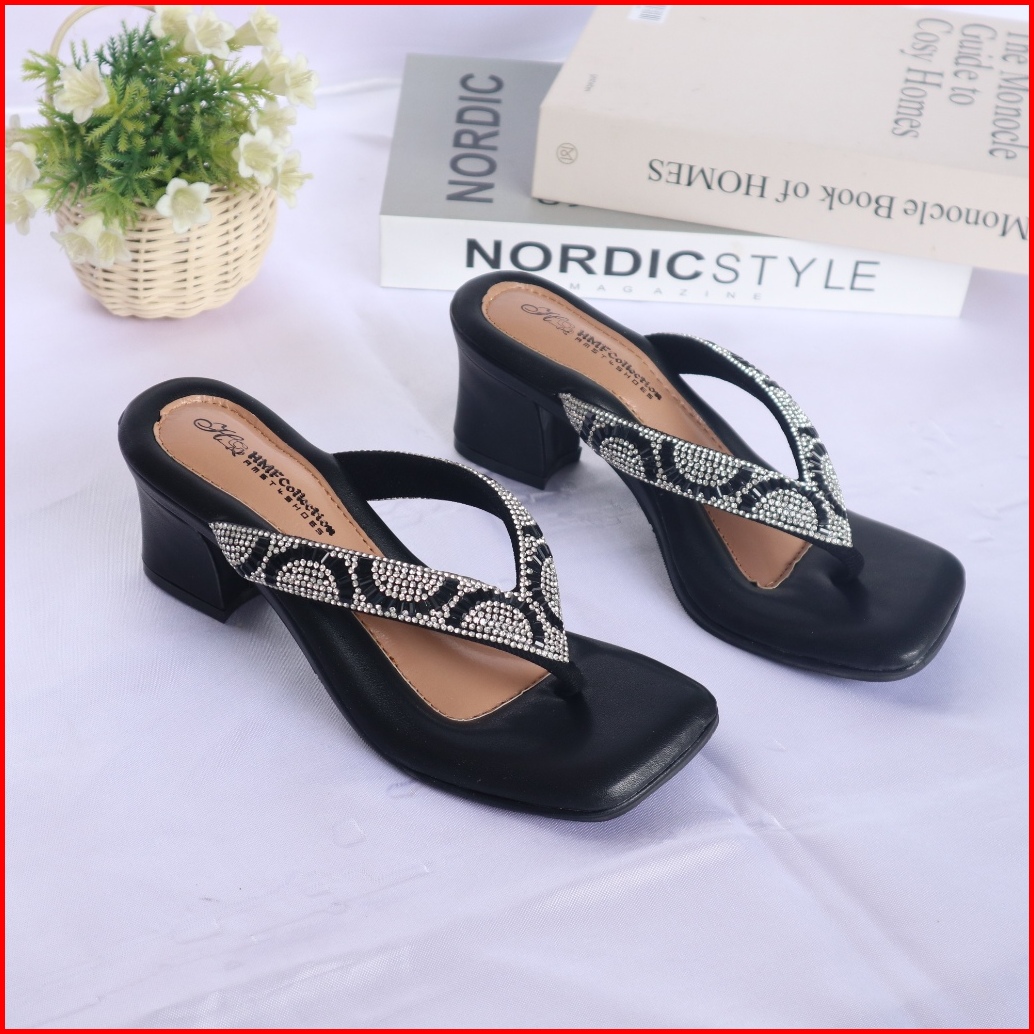Hmf Tuloosa Sandal Hak Mules Jepit Wanita Hn64