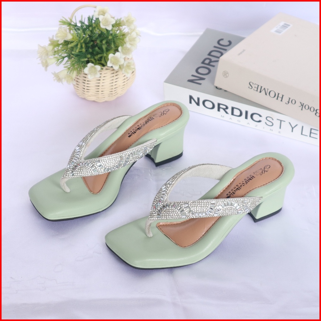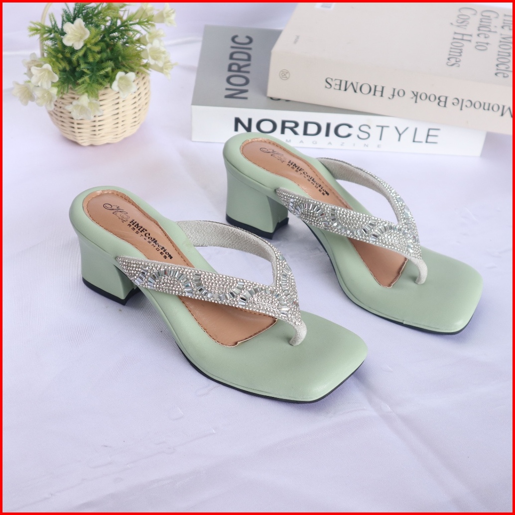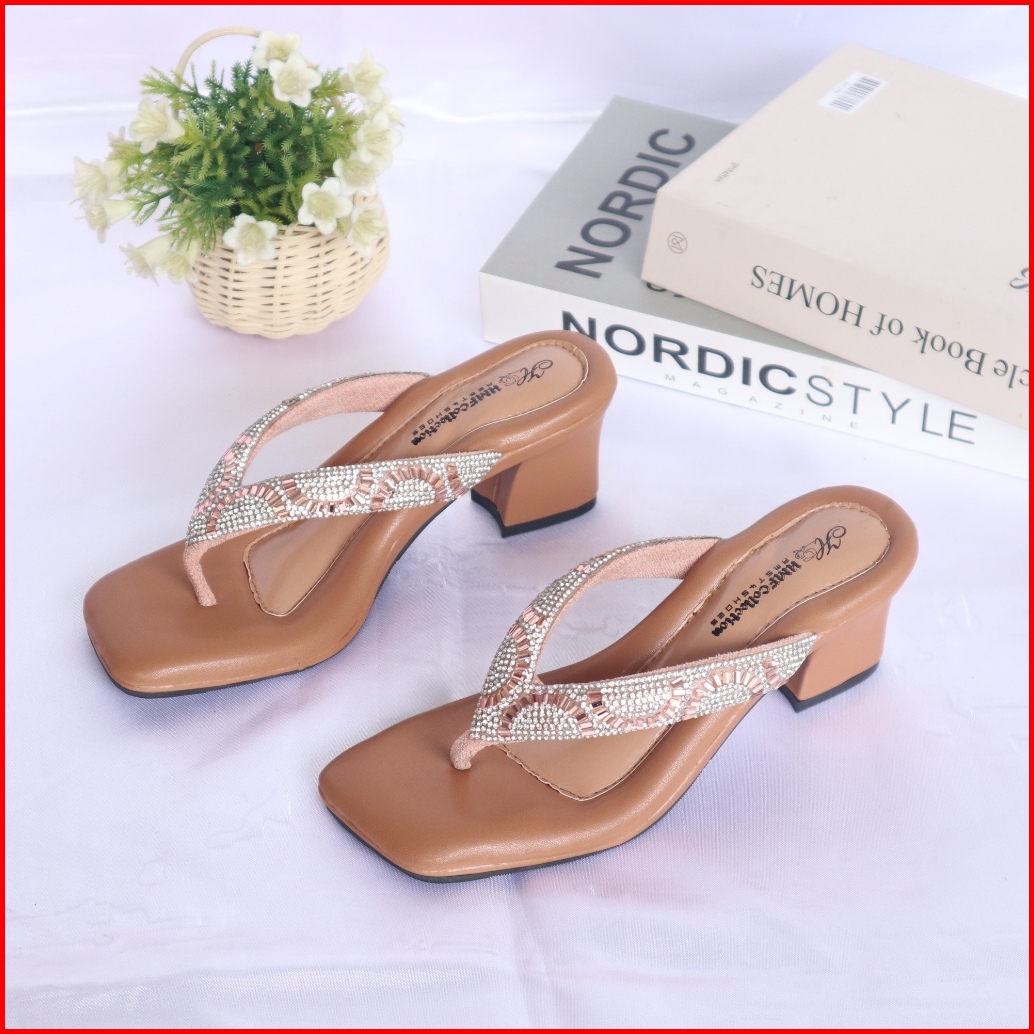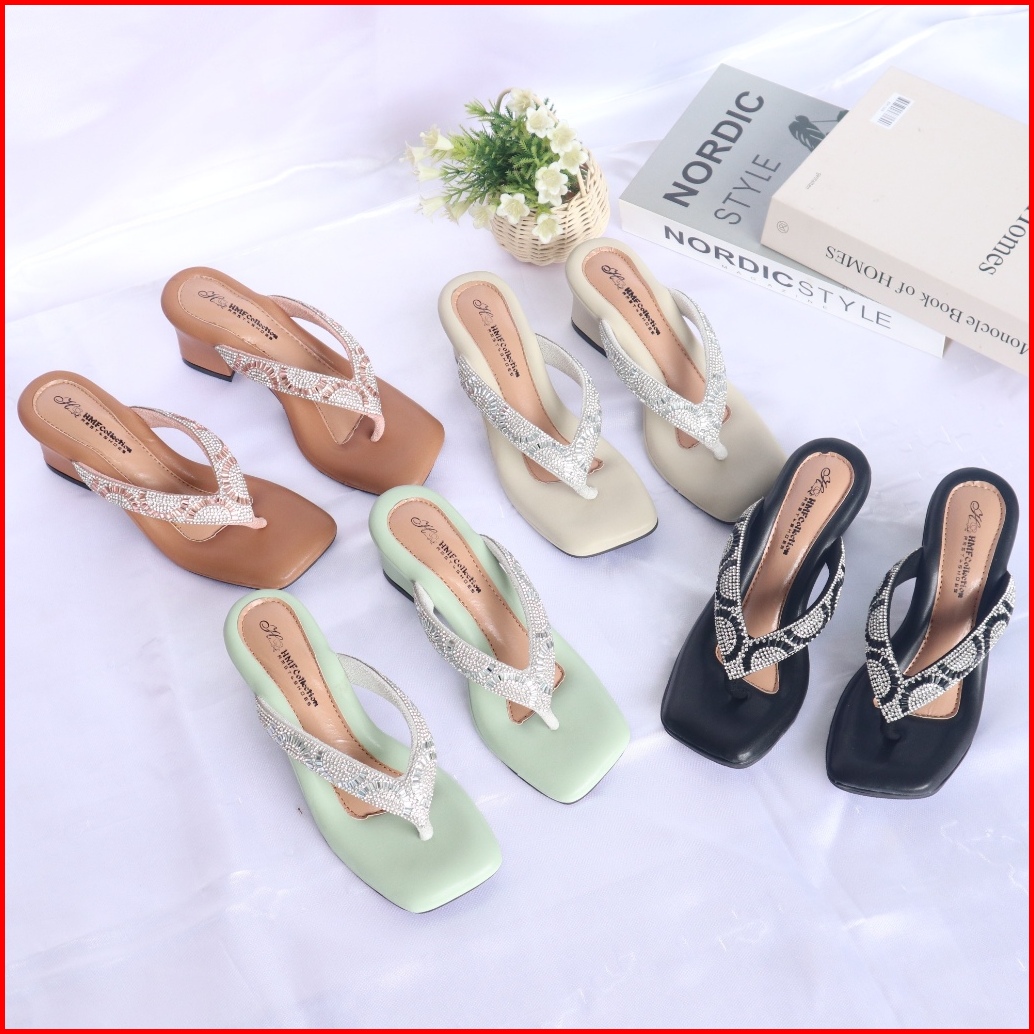 Hmf Tuloosa Sandal Hak Mules Jepit Wanita Hn64