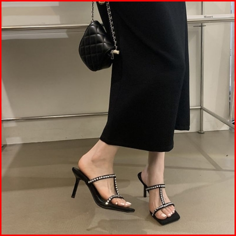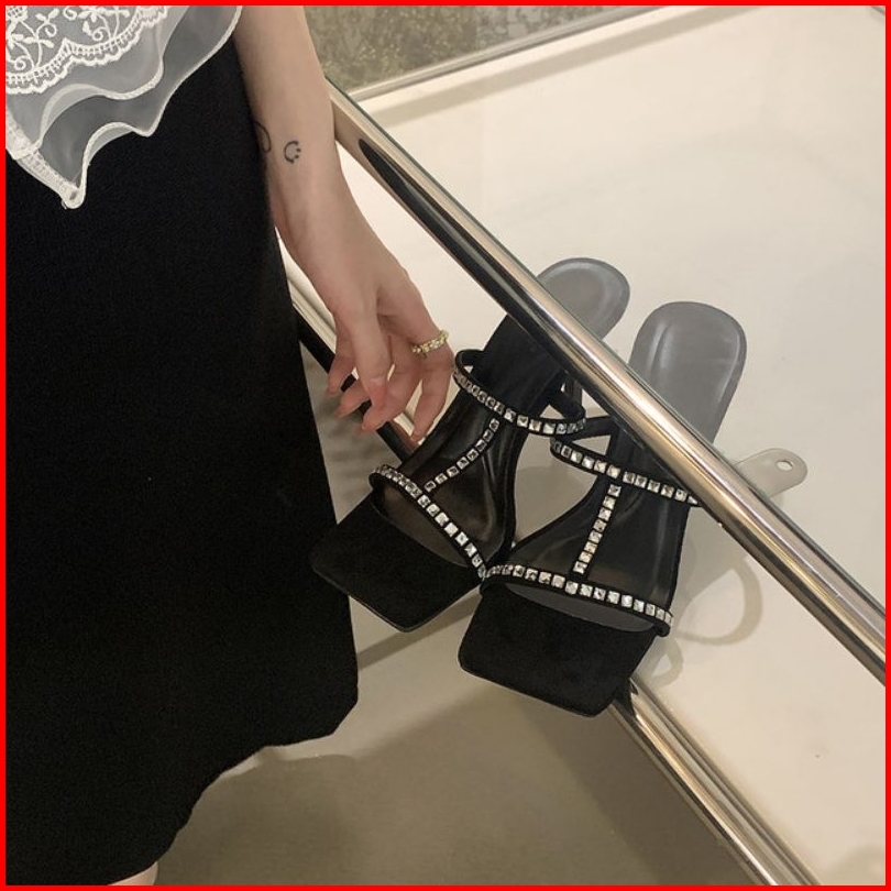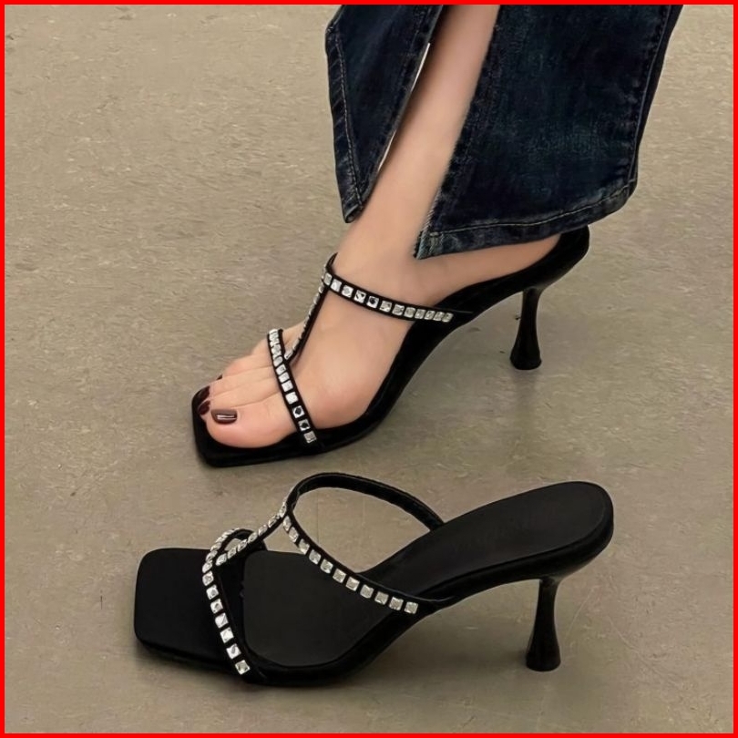 Series Ar 12 High Heels Wanita Hak 7 Cm Stiletto Sandal Pesta Rhinestone Import