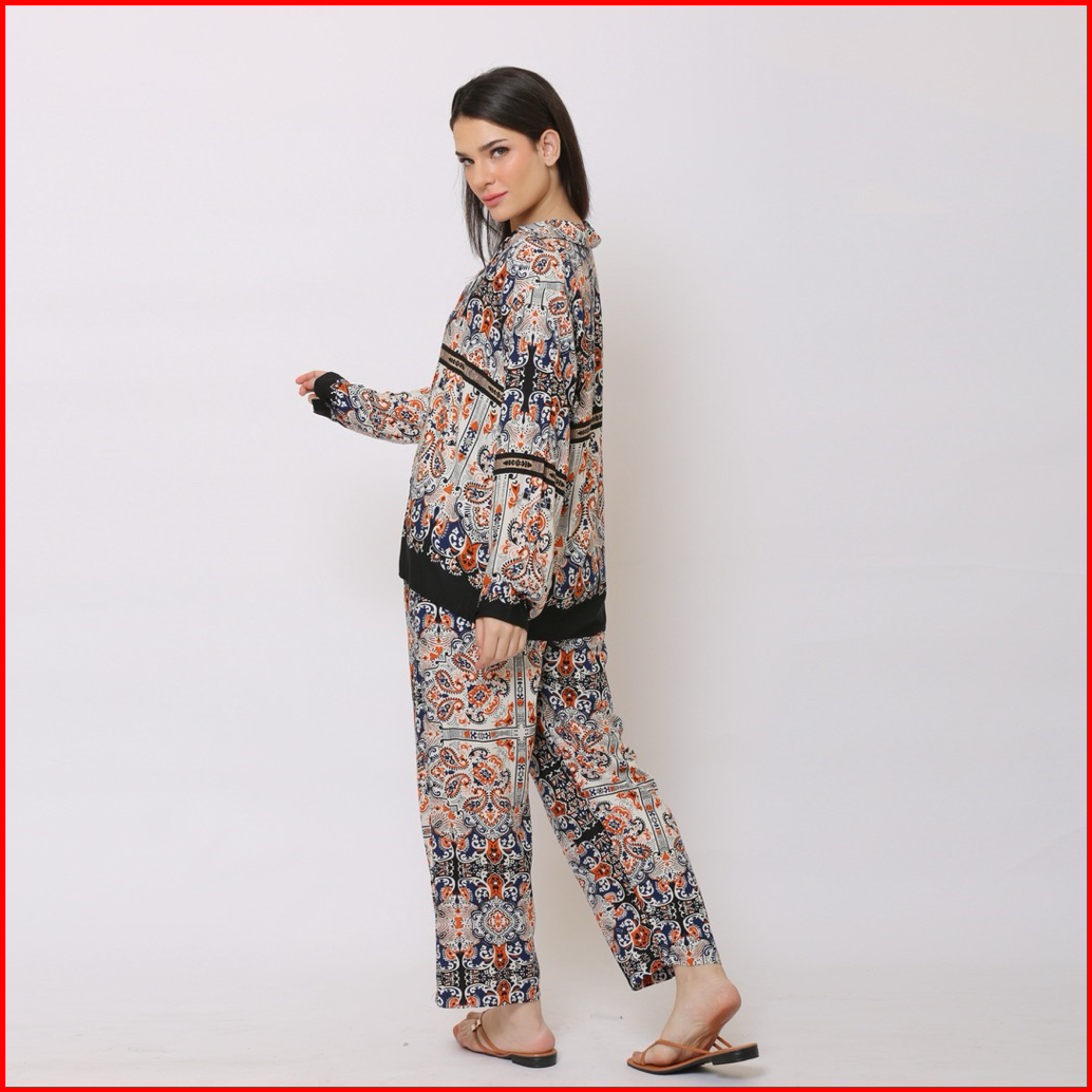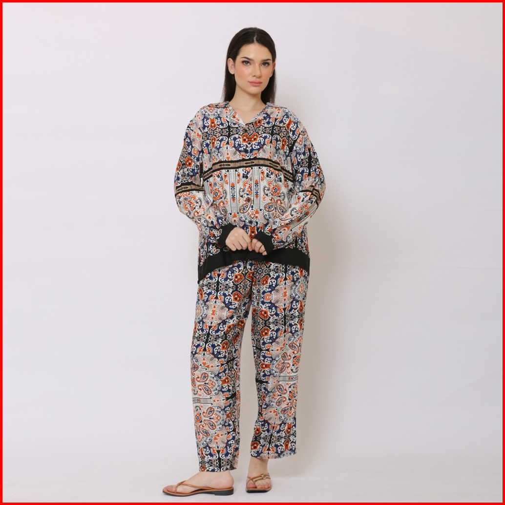 Pajamas Wanita Lengan Panjang Motif Kekinian Piyama Wanita One Set Lengan Panjang Pajamas Panjang Rayon Premium Pajamas