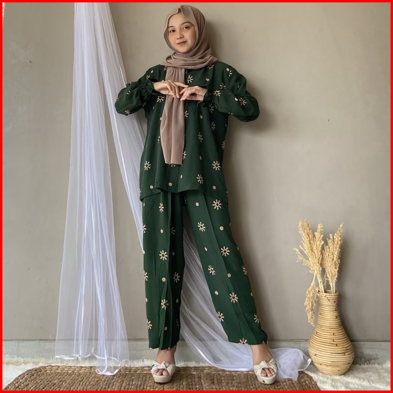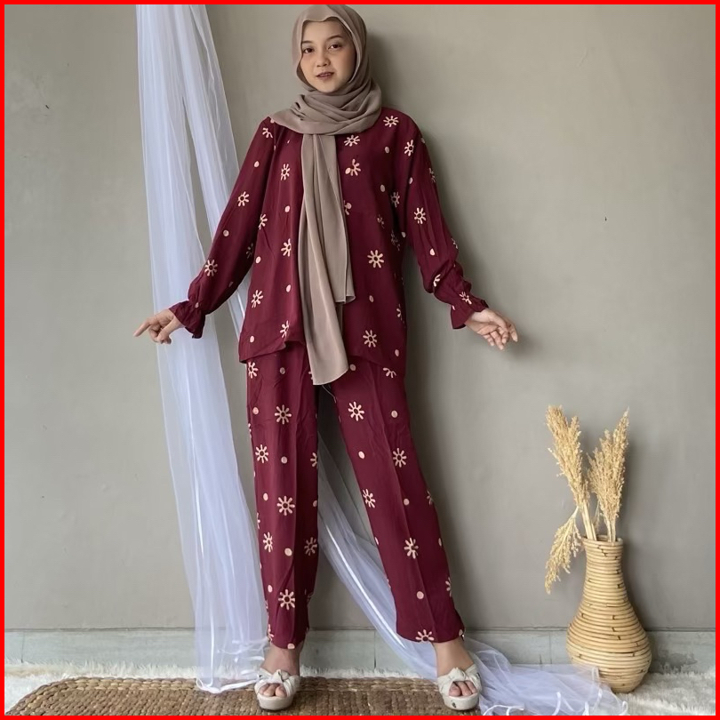 Daisy One Set Rayon Lengan Panjang Bunga Daisy Pajamas Rayon Piyama Rayon Baju Tidur Rayon