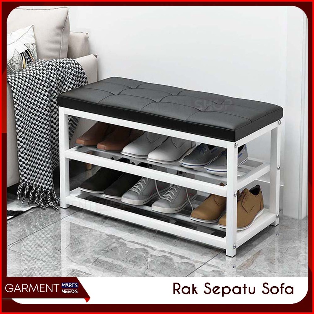 Rak Sepatu Duduk Sofa Besi Tempat Pakai Sandal Ruang Tamu Kokoh Kuat Lemari Sepatu 2 Susun