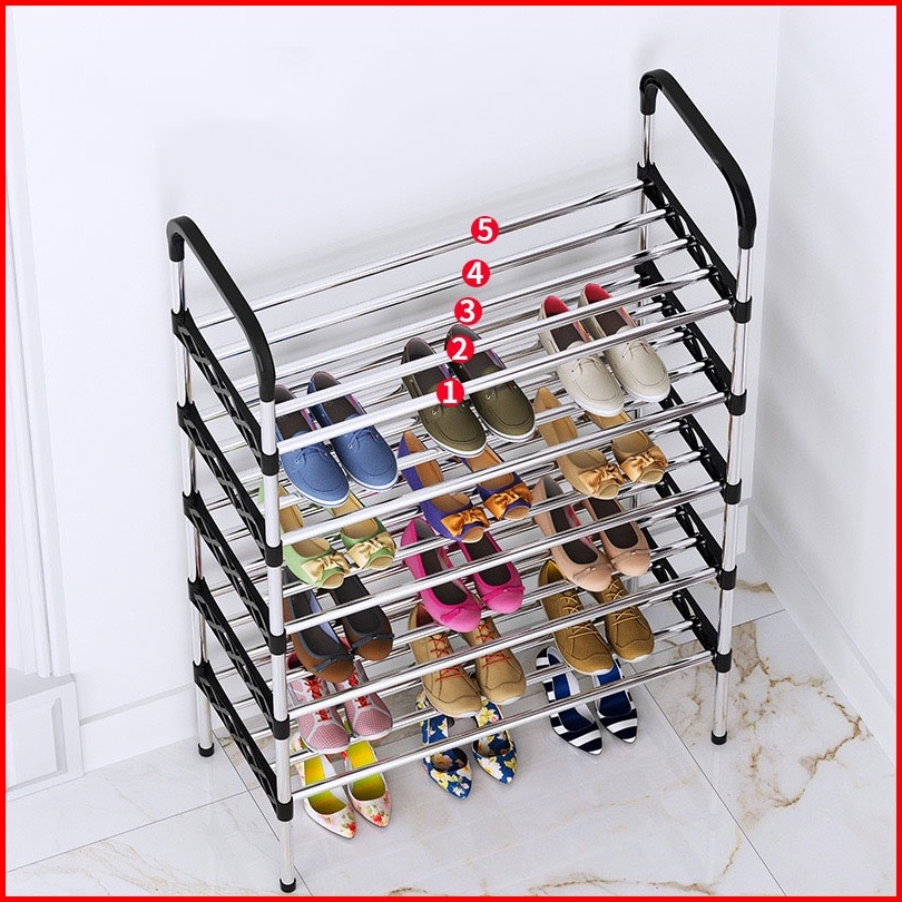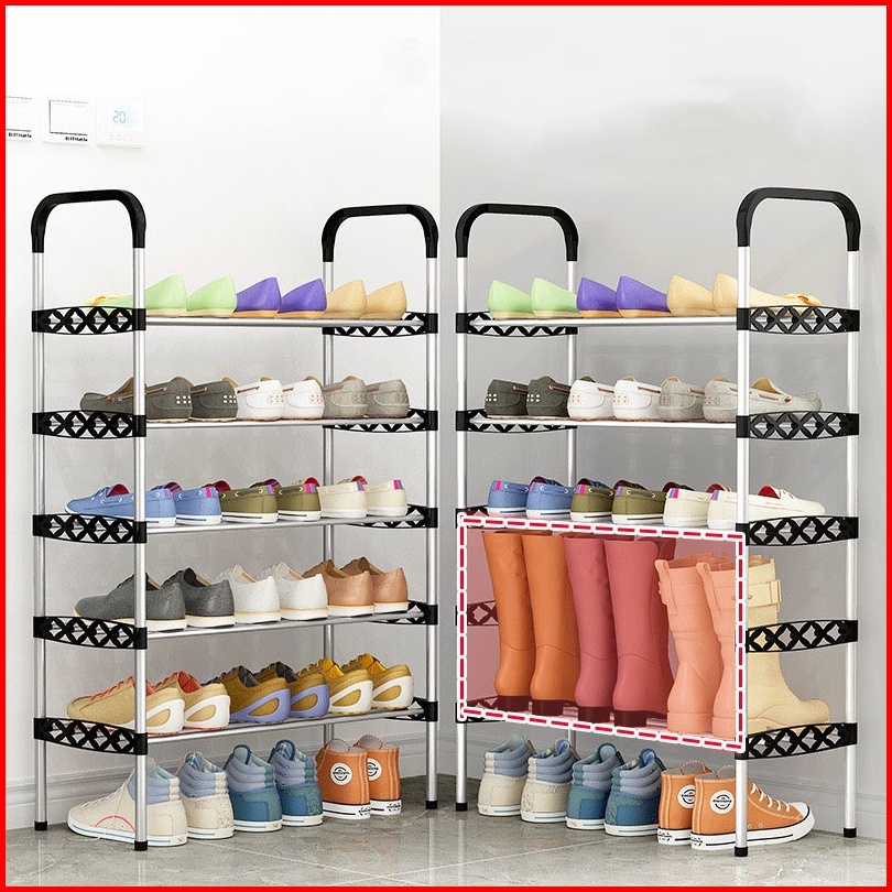 Zenrak Sepatu Sandal Susun Tingkat Portable Rangka Besi Plastik Kokoh Rak Serbaguna