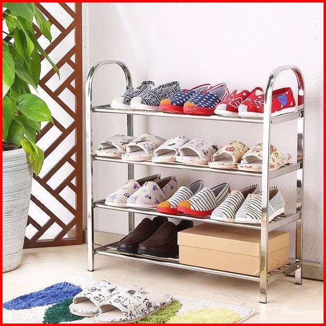 Rak Sepatu Susun Stainless Steel Multifungsi Portable Kuat Tempat Sepatu Sandal Multifungsi Susun