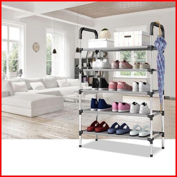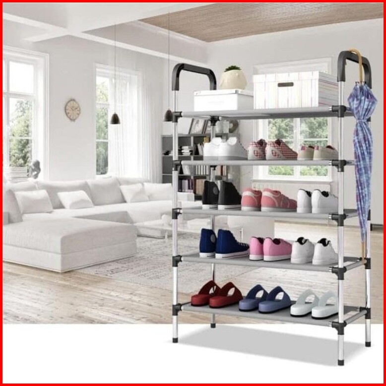 Rak Sepatu Portable 5 Susun Rangka Besi Aluminium Praktis Tempat Sepatu Sendol X05