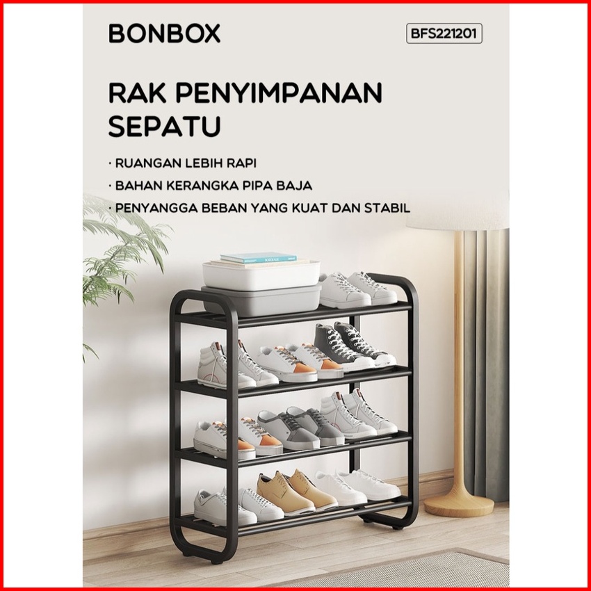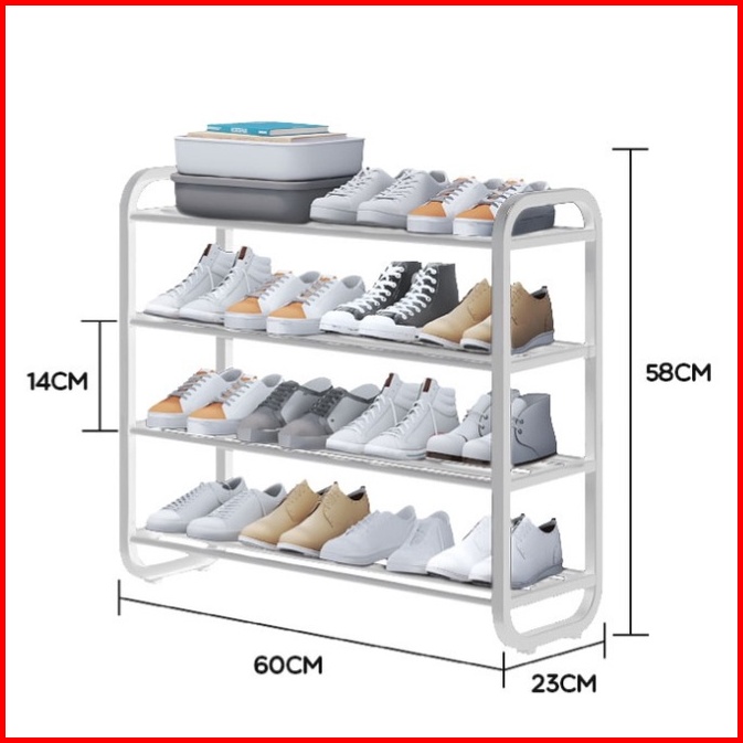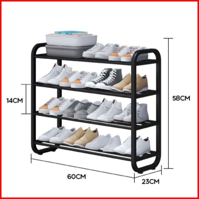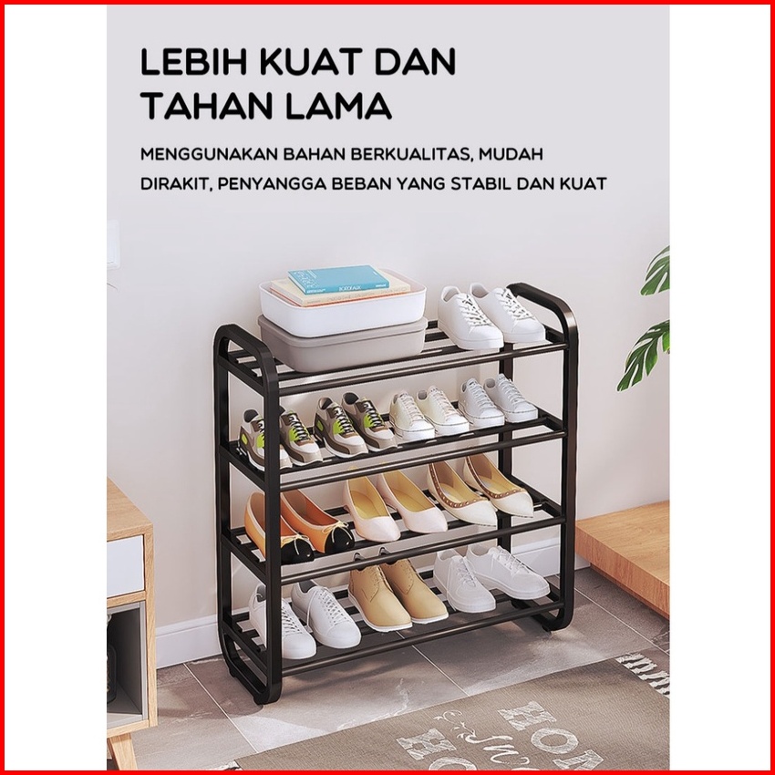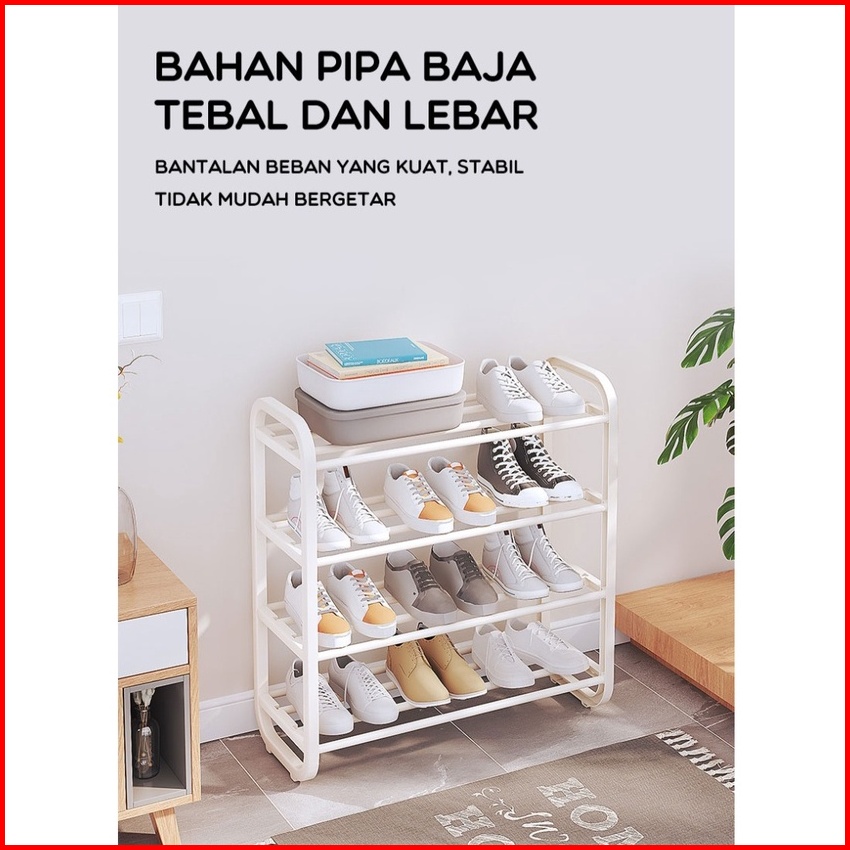 Rak Sepatu 4 Susun Estetik Pipa Besi Anti Karat Rangka Plastik Segi