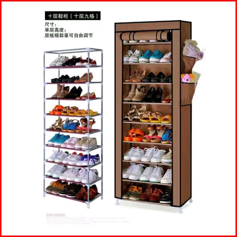 Rak Sepatu Kain Multifungsi 10 Susun 9 Rangka Minimalis