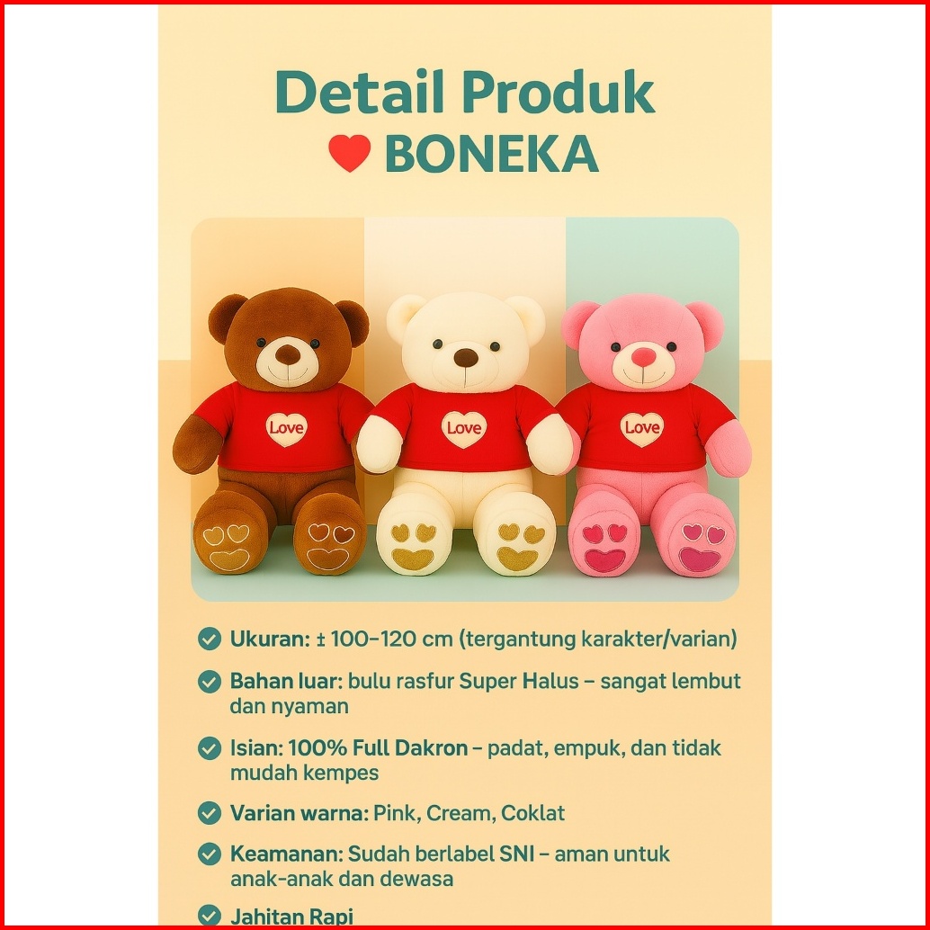 Boneka Bear Baju Jumbo Gemoy Kualitas Premium Full Dakron Lembut Cocok Untuk Hadiah Spesial Orang Tersayang