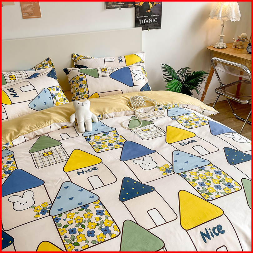 Bed Cover Bahan Polyster Bed Cover Tanpa Busa Motif Aesthetic Lucu