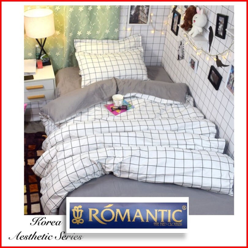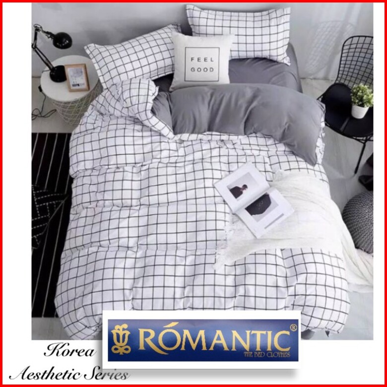Aesthetic Korea Series Bedcover Sprei By Romantic Motif Kotak Putih Katun Jepang Minimalis