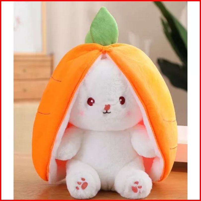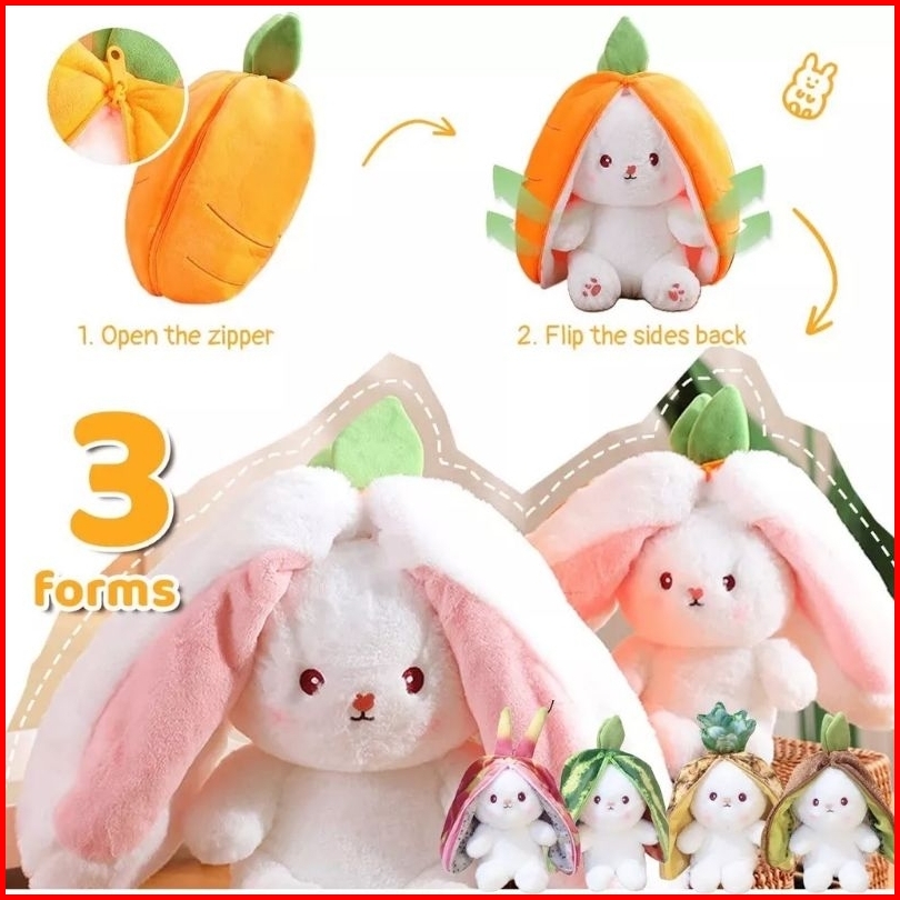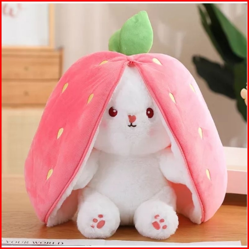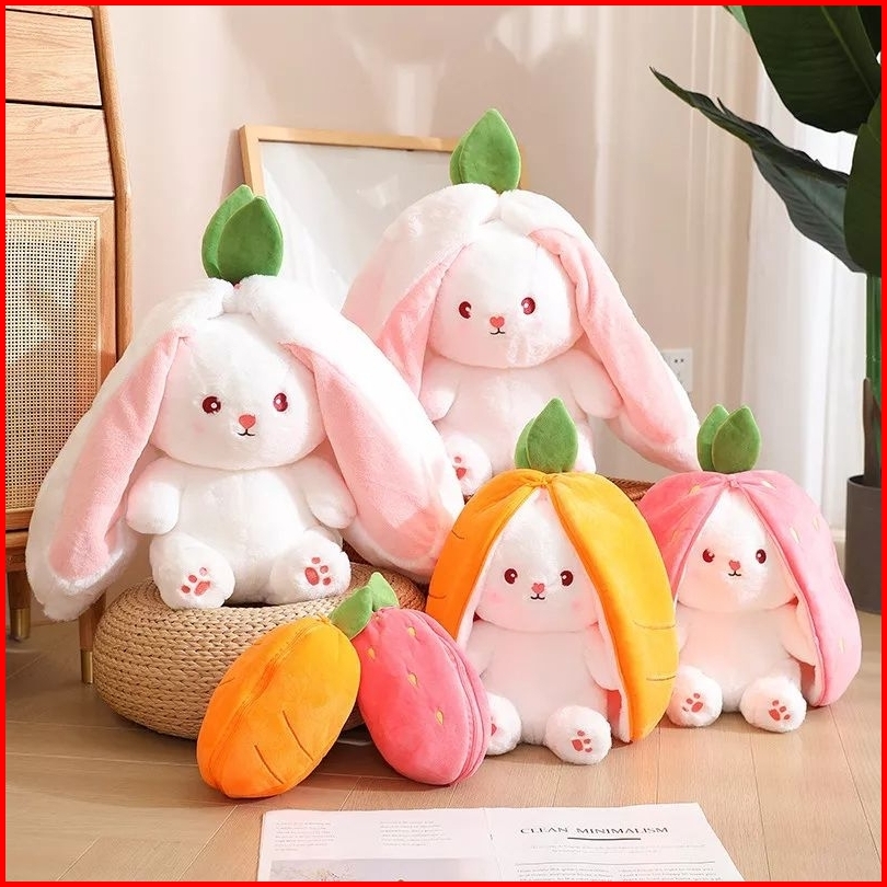 Mainan Boneka Kelinci Strawberry Wortel Flip Lucu Kartun Kelinci Mainan Mewah Anak